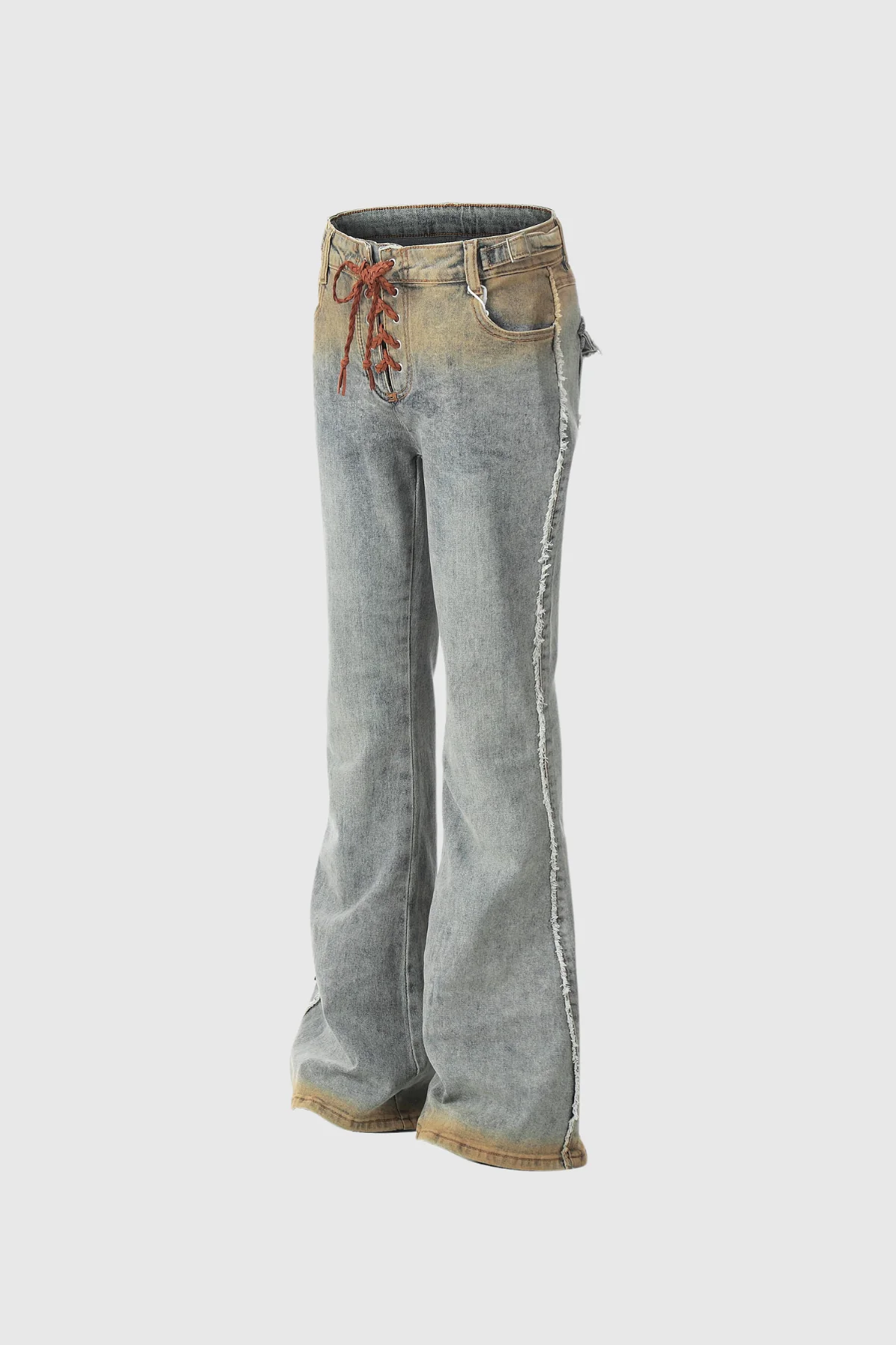 Discover the expertly crafted Hayley Lace-Up Denim Jeans . These jeans blend modern style with superior durability, offering a distinctive lace-up detail for a sleek tailored fit that accentuates your silhouette and ensures all-day comfort. Made from high-quality denim, the jeans are versatile for both casual and stylish looks, making them a must-have addition to your wardrobe. Experience sophistication and versatility with these non-stretch denim jeans that can elevate any outfit effortlessly. Clean with a gentle machine wash to maintain the refined appearance. Please note, the color may vary due to lighting conditions. Own your style with the timeless appeal of these lace-up jeans.