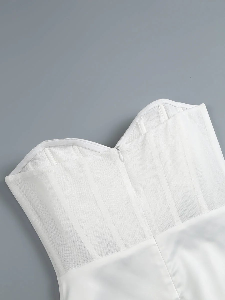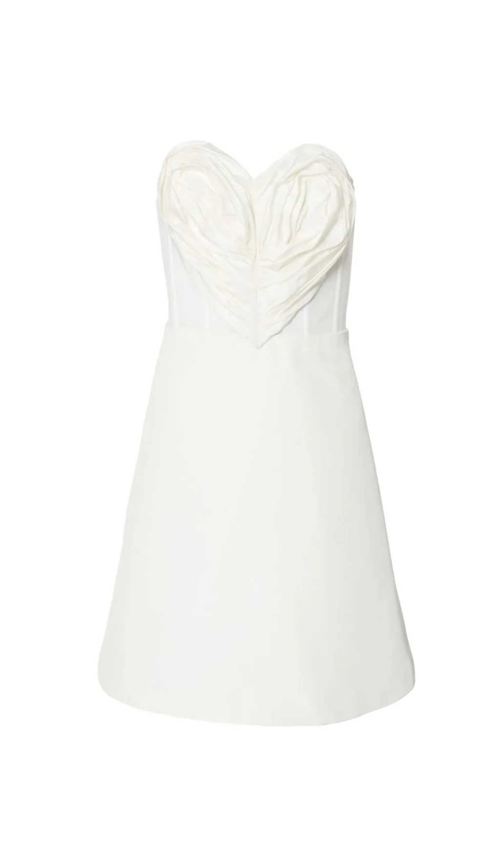 Elevate your style with our Heart Motif Bandeau Silk Mini Dress, featuring a whimsical heart design and a flattering silhouette. The bandeau neckline adds a flirty touch, making it perfect for date night or a fun evening with friends. This charming dress is designed with a fitted waistline and a thigh-length hem, crafted from 100% silk for an elegant finish. The rear zip fastening ensures a sleek look. Please refer to our size chart for the best fit as the item runs true to size. Indulge in this chic dress choice today!