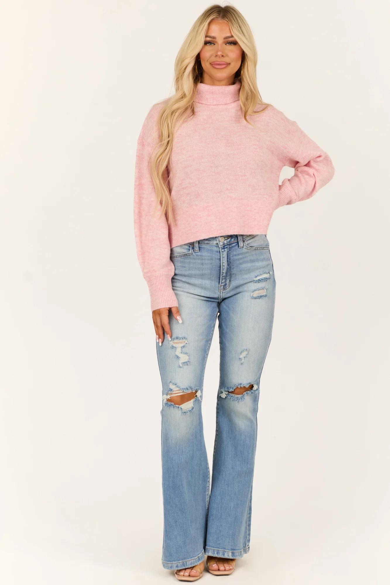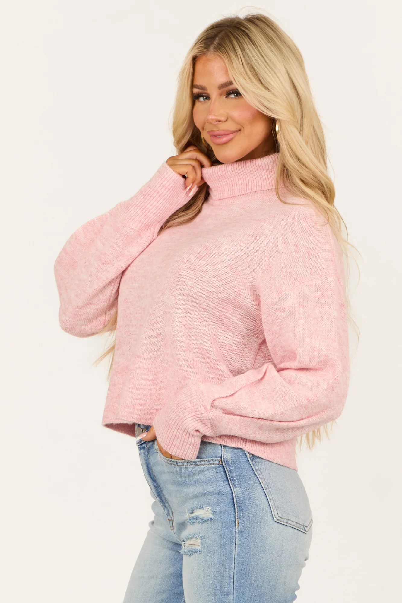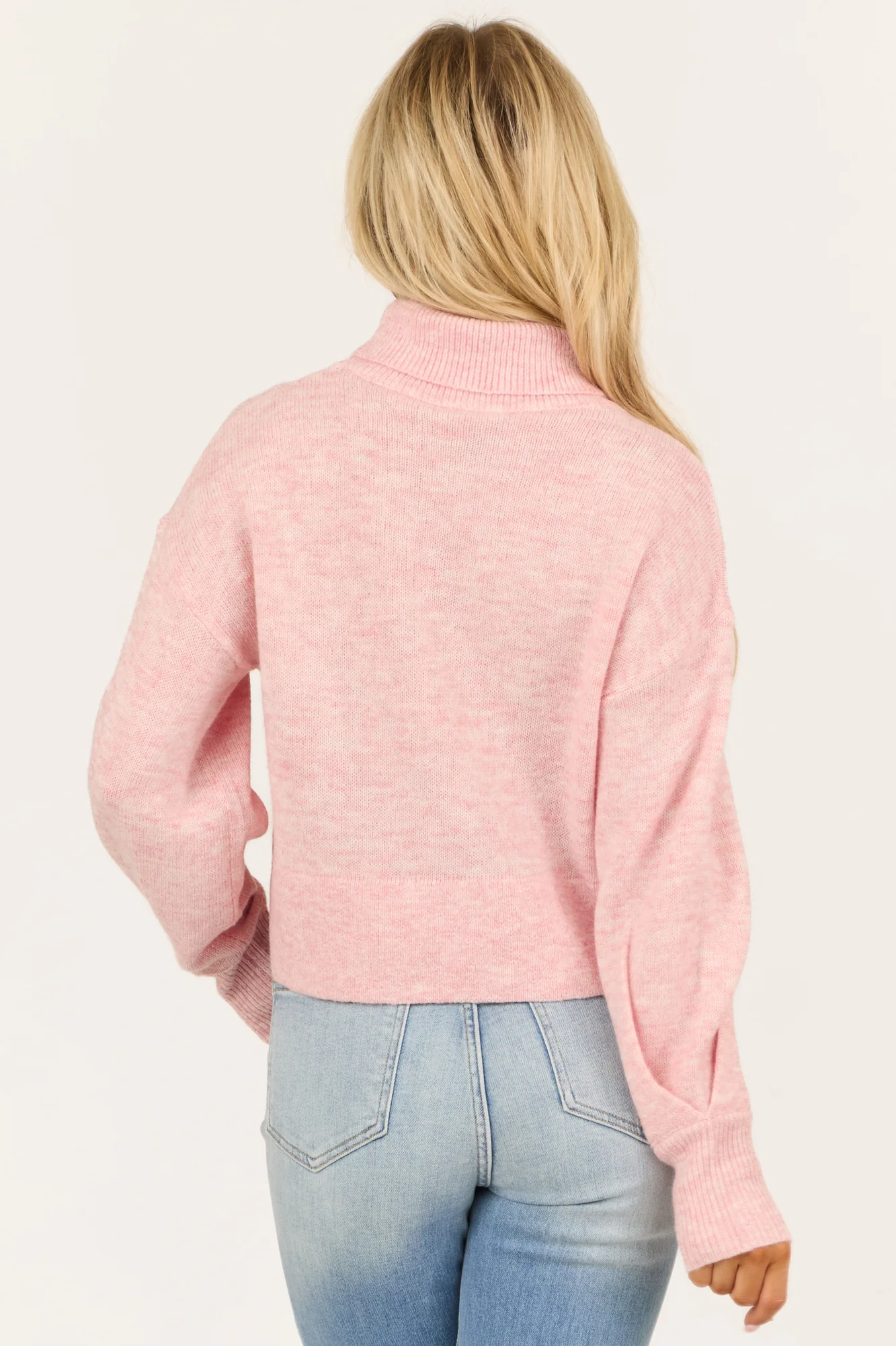 Stay cozy and chic with our Baby Pink Heathered Turtleneck Sweater. Crafted from a soft blend of 60% Polyester, 28% Acrylic, and 12% Wool, this sweater offers a wide boxy fit and features stretchy rib knit fabric. The ribbed banded trim, long sleeves, and drop shoulder add a stylish touch. Perfect for a casual day out or a relaxing evening in. Care instructions: Hand wash cold, dry flat, iron low heat.