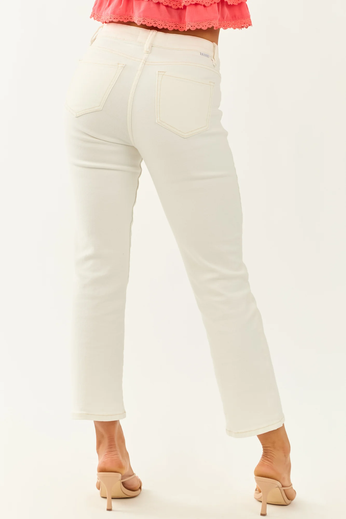 Upgrade your wardrobe with these stylish white stretchy denim jeans that offer the perfect blend of simplicity and refinement. Made of 92% cotton and 2% spandex, these ankle-length pants feature a high-rise design, back pockets, faux front pockets, a functional coin pocket, belt loops, and a zipper fly with button closure. Enjoy a comfortable and flattering fit with true-to-size measurements. Ideal for various occasions, these jeans are a must-have for any fashion-conscious woman.