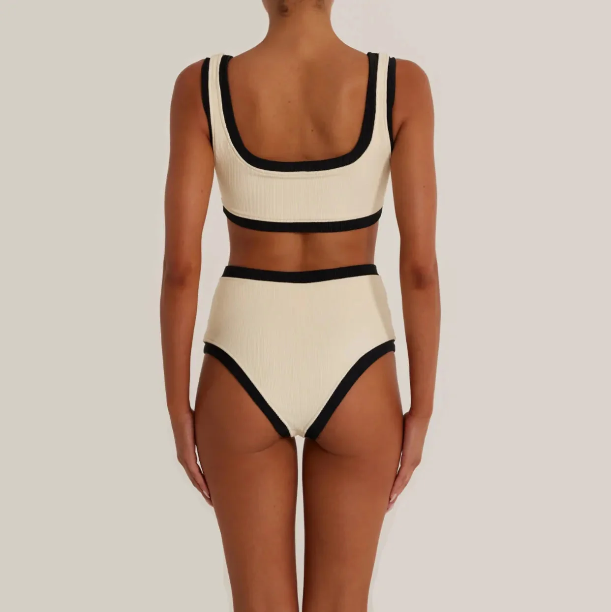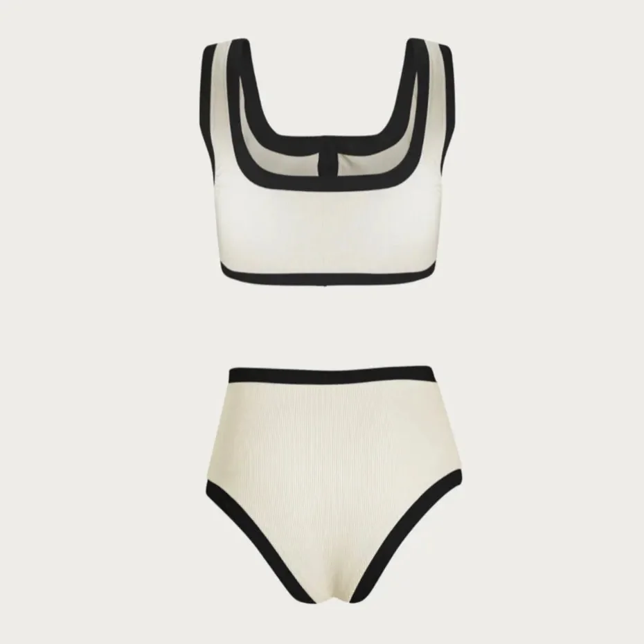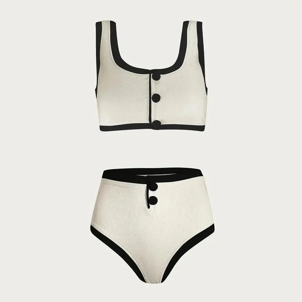 Elevate your beach style with this high waist retro black and white bikini set . The high waist bottom offers a flattering fit and ample coverage, while the retro-inspired top with button details exudes timeless elegance. Crafted from premium quick-drying fabric, this bikini ensures lasting comfort and durability. Whether youre swimming or lounging by the pool, the supportive top and secure fit guarantee a perfect look. Embrace the retro vibe by pairing it with oversized sunglasses or a sun hat. Follow us on Instagram @mermaid_way for more style inspiration and enjoy a complimentary size exchange if needed.