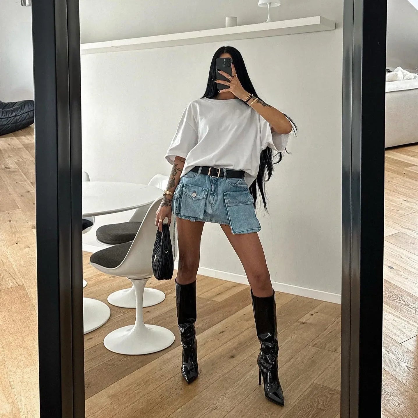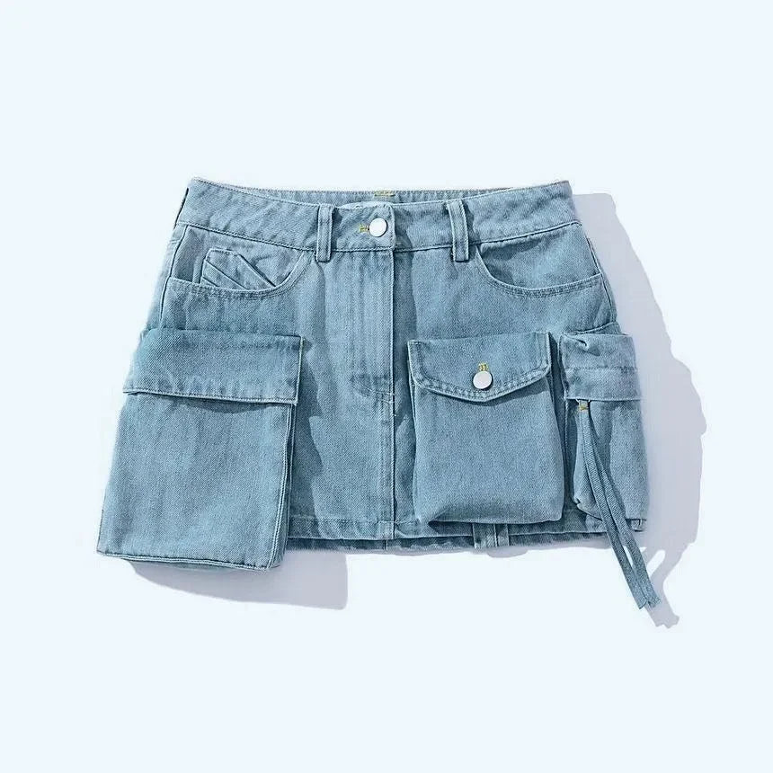 Elevate your wardrobe with our Denim Mini Skirt from the Manhattan St. Collection. This versatile skirt features a high-waisted design that accentuates your silhouette and a modern frayed hem for a touch of edge. Crafted from high-quality denim for durability and comfort, this skirt is perfect for any occasion. Whether its a casual brunch or a night out, this must-have piece ensures a chic look. Explore more style inspiration on Instagram @mermaid_way. Features include a low-rise style, button fly fastening, front cargo pockets, and a straight hem. Experience complimentary sizing exchanges if needed.