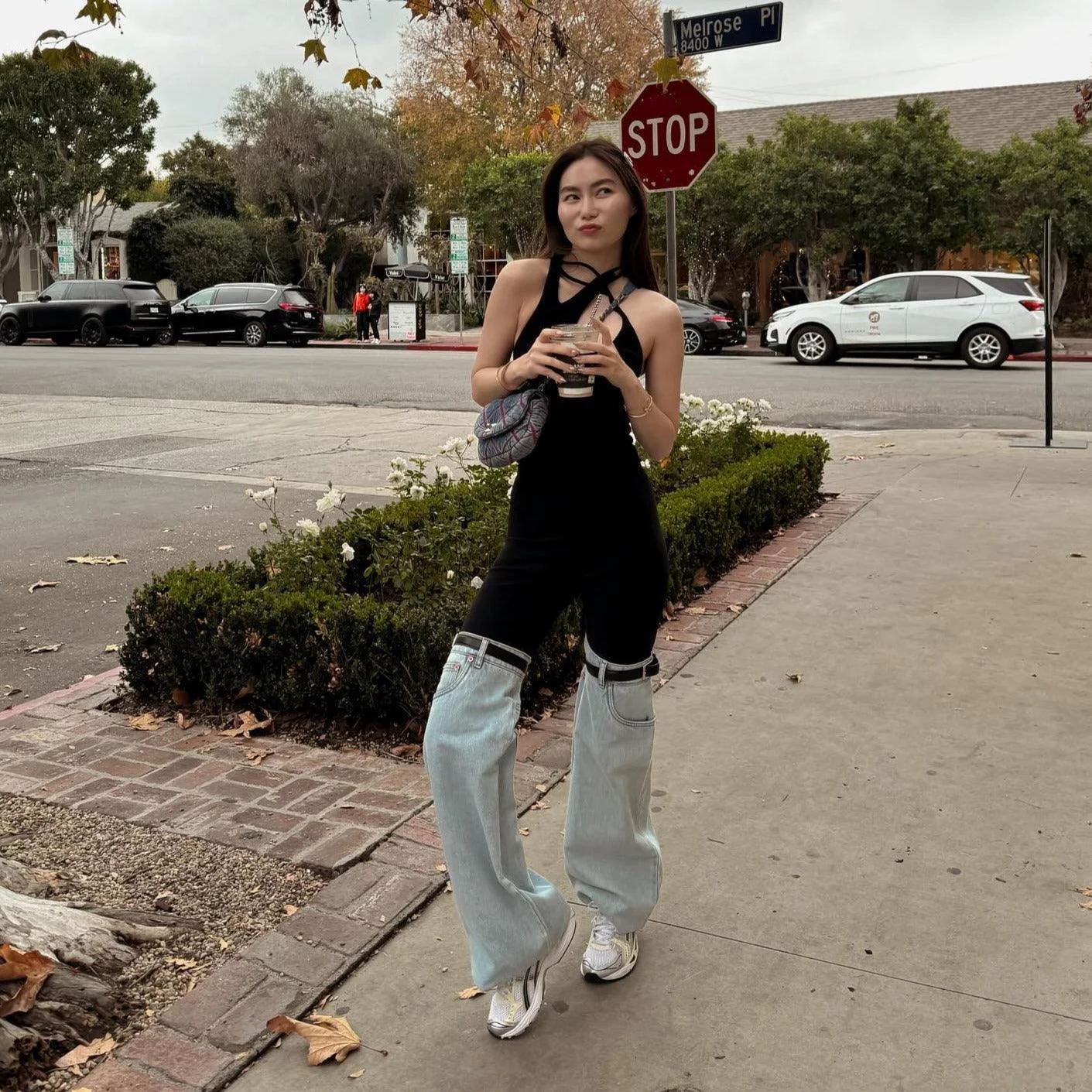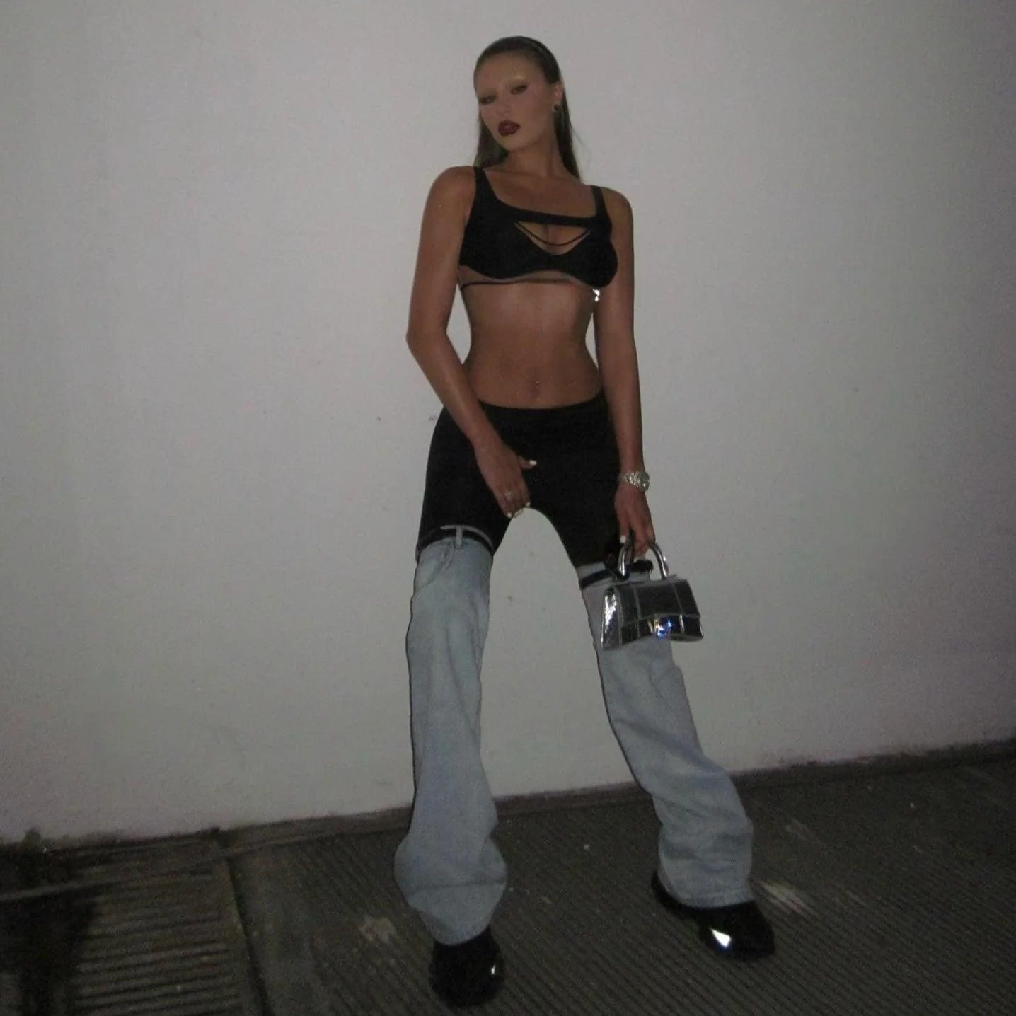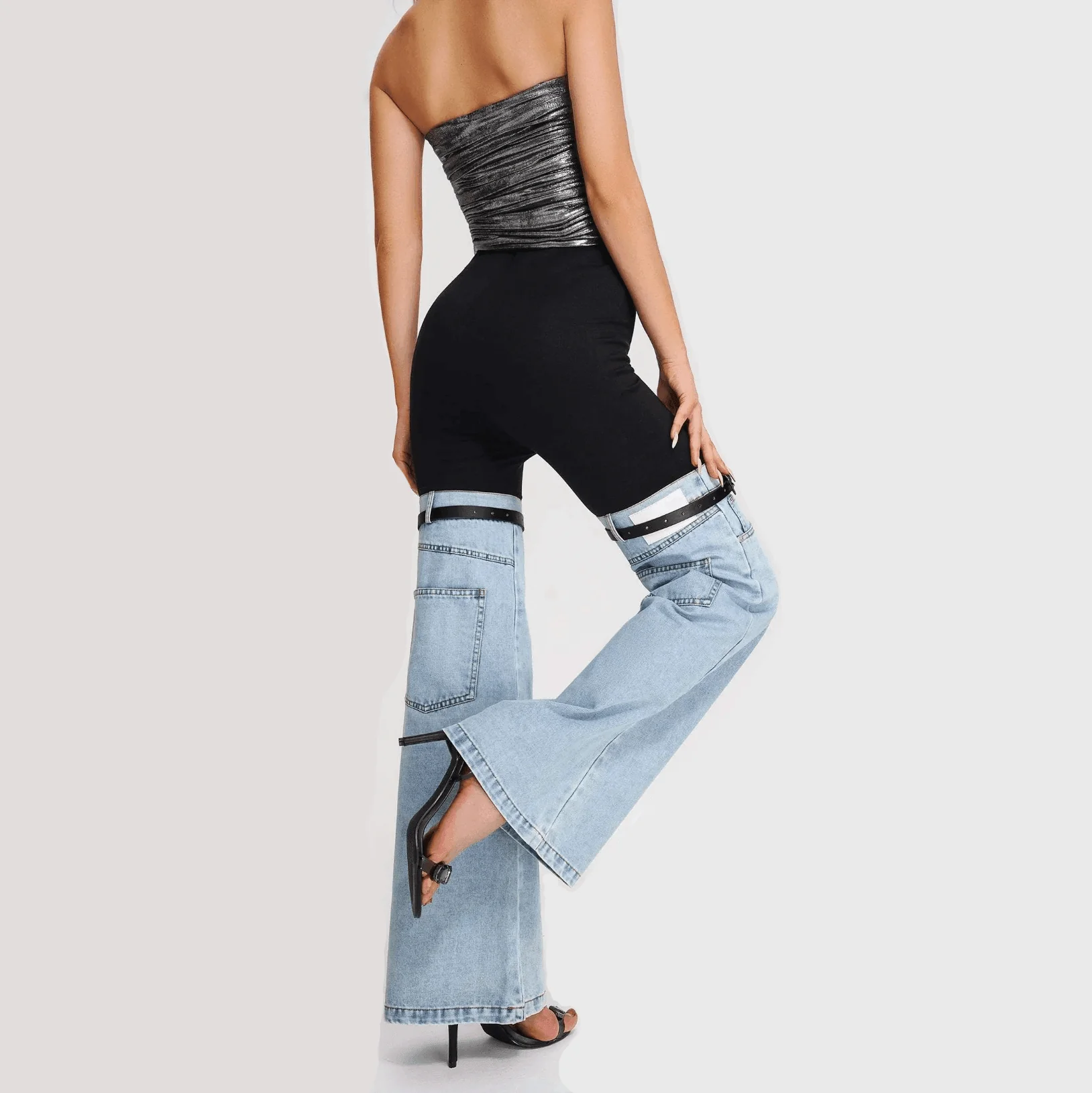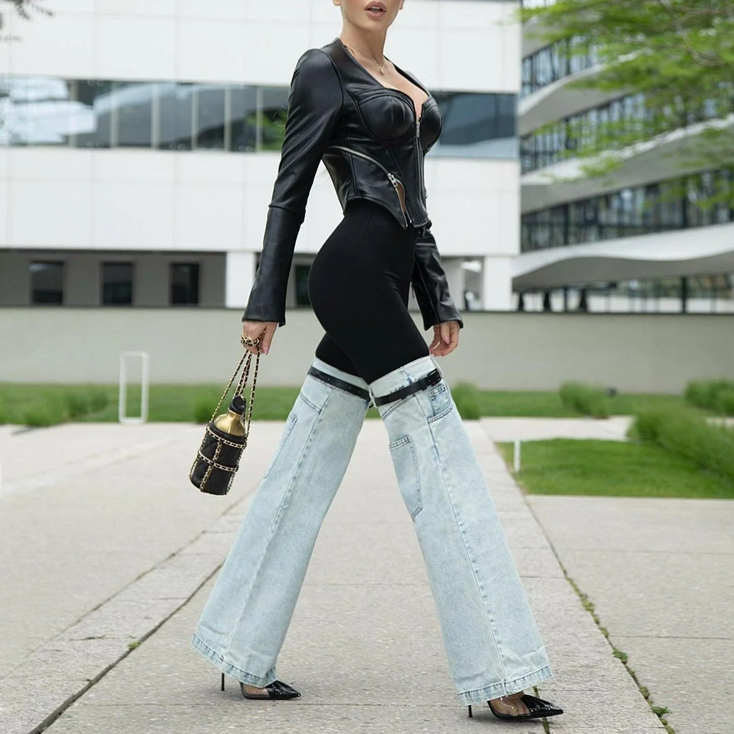 Elevate your style with the high-waisted urban denim flare pants . These chic and versatile pants feature a unique hybrid design that combines classic denim with trendy flare legs for a touch of sophistication. Crafted from a blend of cotton, polyamide, and elastane, they offer both comfort and style. Whether for casual outings or dressier occasions, these pants transition seamlessly from day to night. Discover endless styling possibilities with these fashion-forward denim pants.