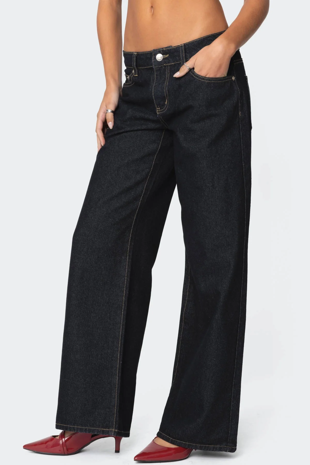 Stay stylish and comfortable with our Indigo Blue Raw Washed Denim Jeans featuring a low rise waist and loose fit design. Made from 100% cotton washed denim fabric, these jeans are perfect for any casual occasion. The model is wearing size S, with a height of 58. Care instructions: Machine wash cold, do not bleach, tumble dry low, iron on low heat, do not dry clean. Click HERE for the Petite version.