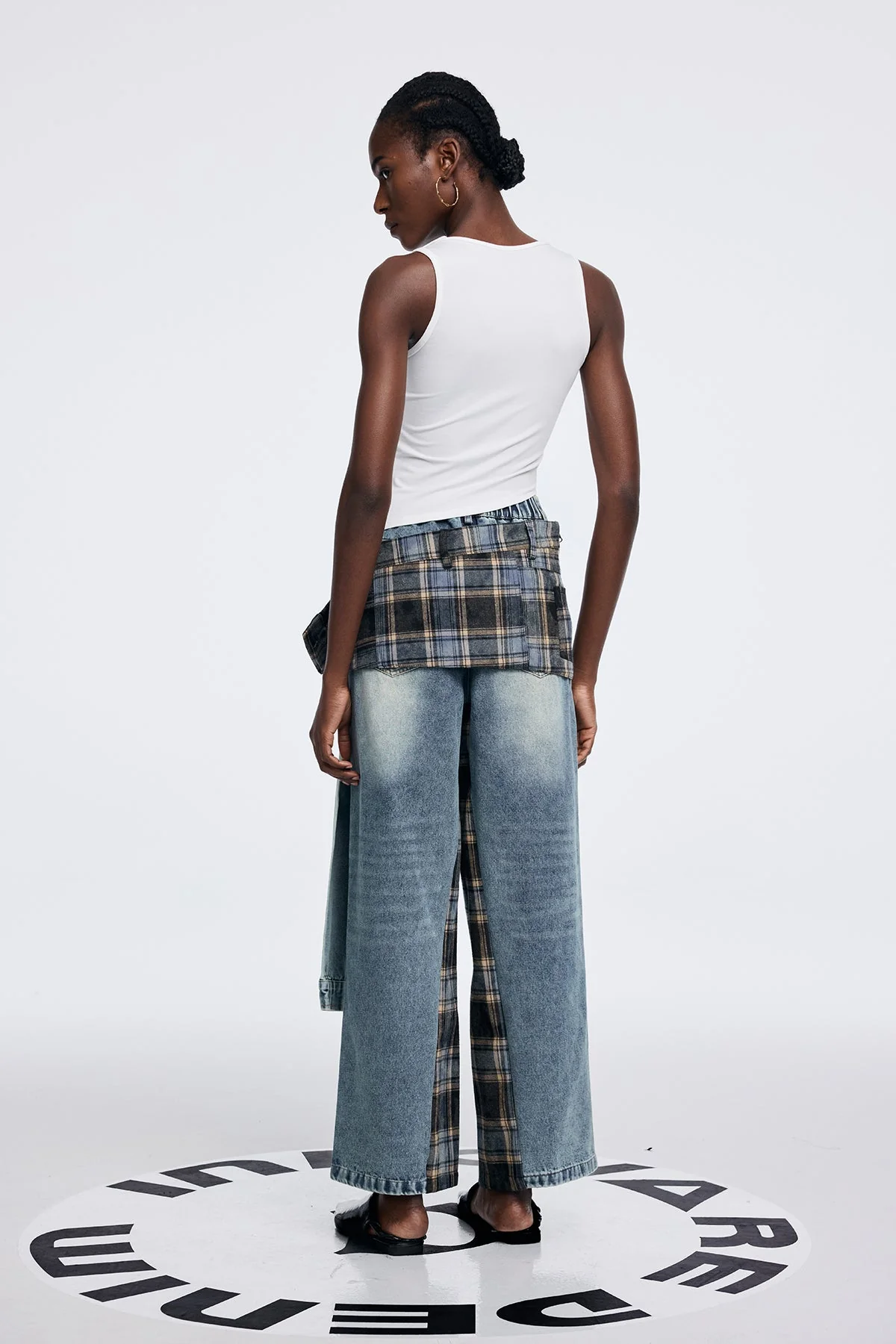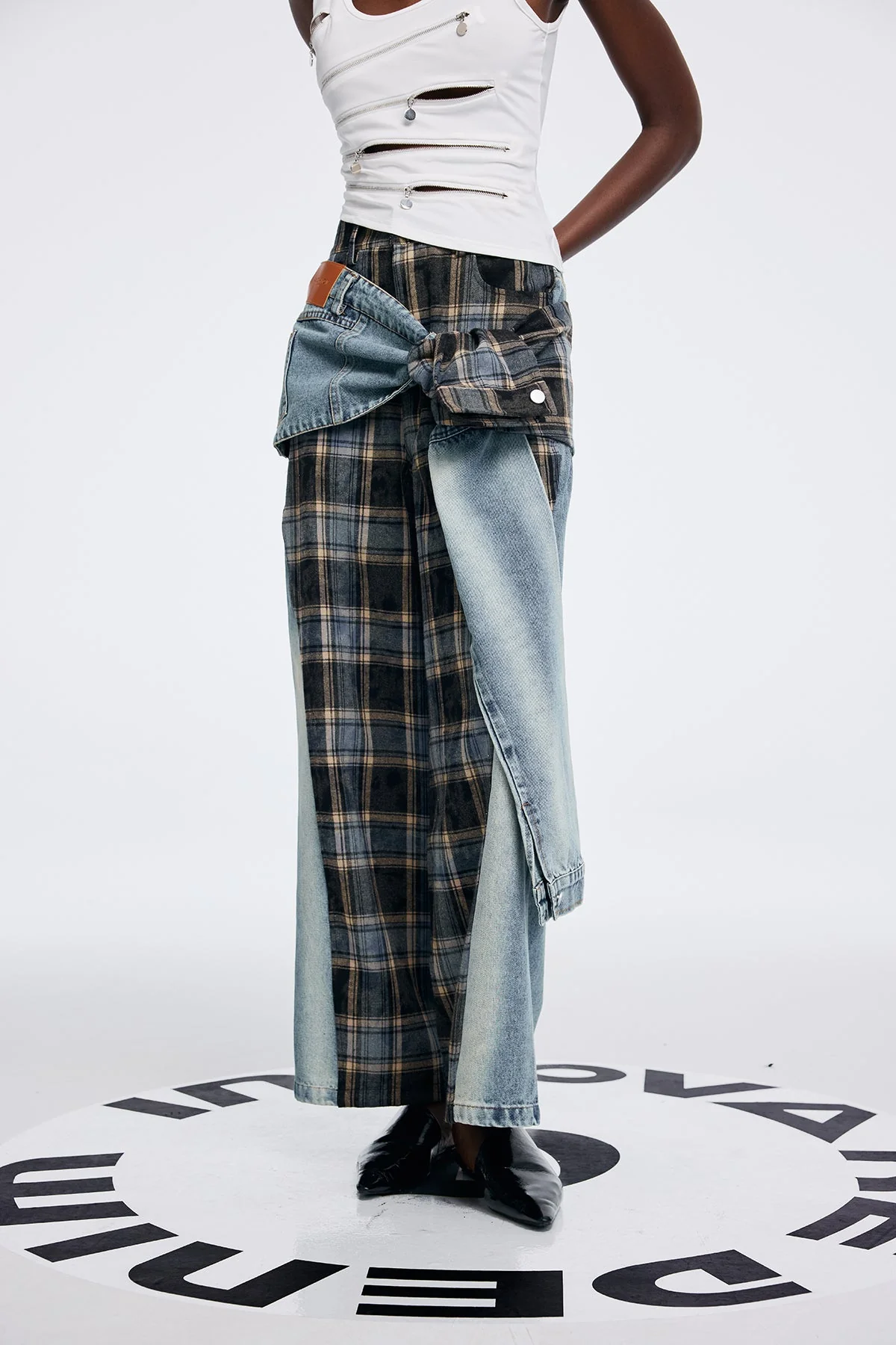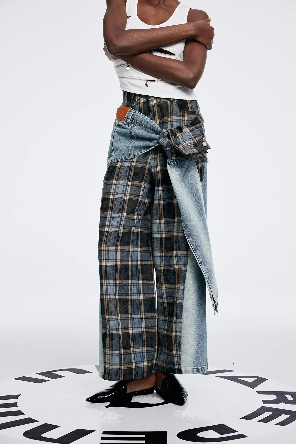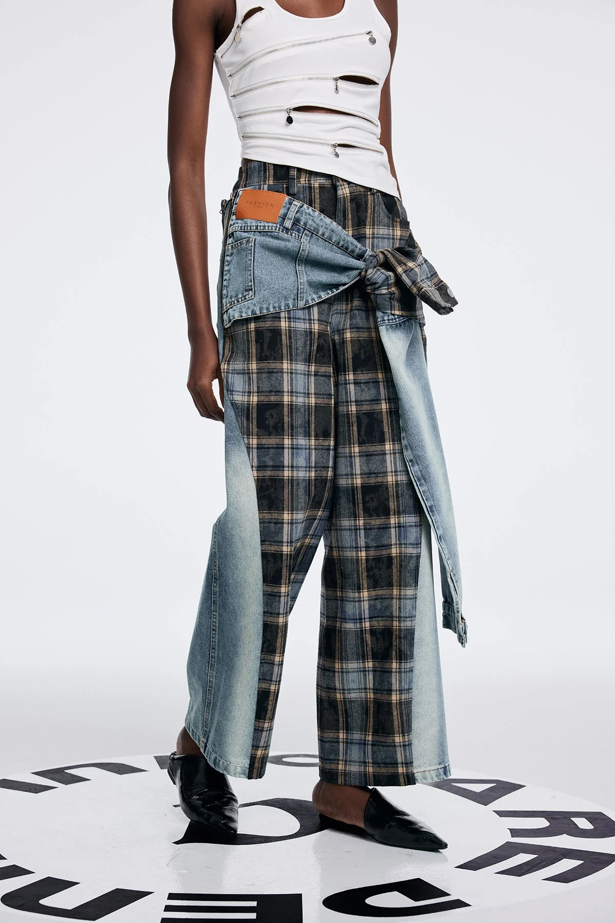 Elevate your wardrobe with the innovative Innovare Denim Grid Patterned Removable Asymmetric Jeans. Featuring a unique grid design and removable asymmetric detailing, these jeans offer both style and comfort. Made with 50% Polyester and 50% Cotton, these non-stretch jeans are perfect for trendsetters. Be the fashion icon with these must-have blue denim jeans that adapt effortlessly to urban edge fashion trends. Please note that color may vary due to lighting differences in images. Gentle machine wash recommended for cleaning.