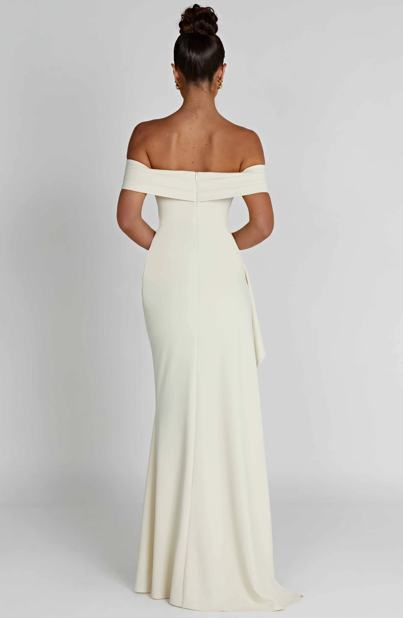 Ivory Bardot Maxi Dress | Elegant Vintage Style