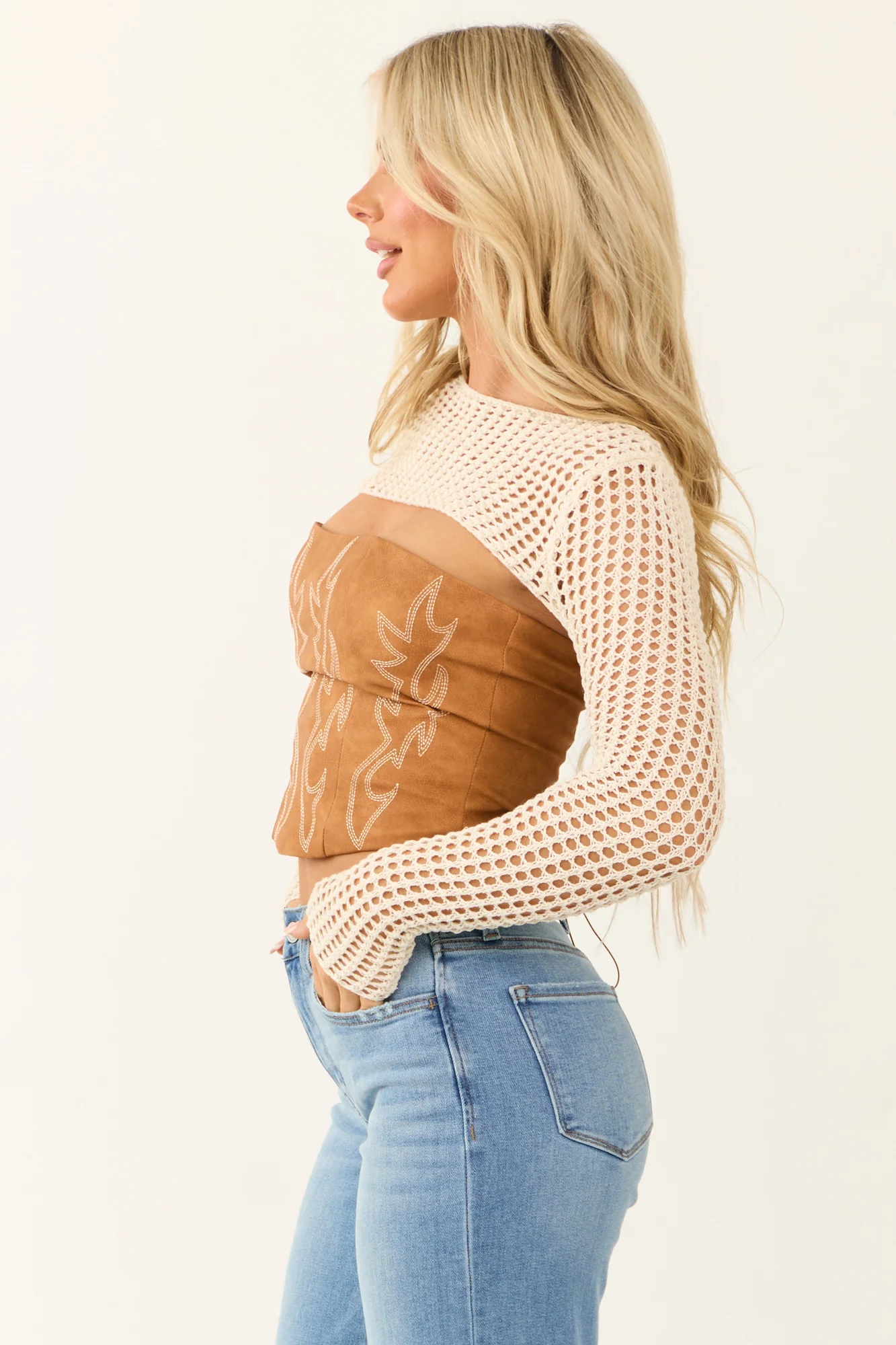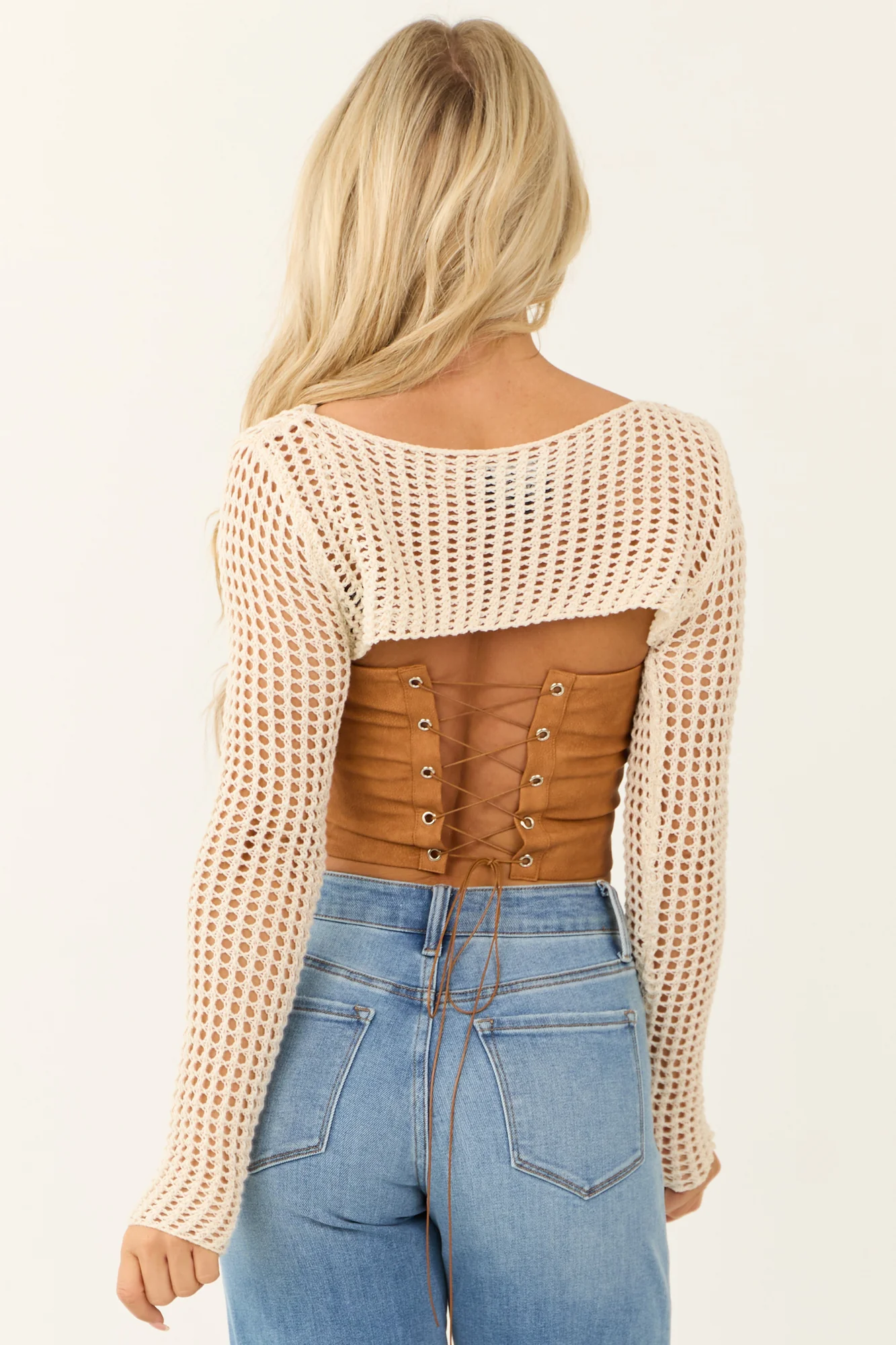 Stay cozy and stylish with this ultra-cropped Ivory Knit Long Sleeve Sweater Top . The stretchy open knit design features a round neckline and is perfect for winter days. Made of 100% Polyester. Available in sizes S, M, and L. Hand wash only recommended. Model is wearing a size Small. Size 1, Height 57″, Bust 34″, Waist 26″.