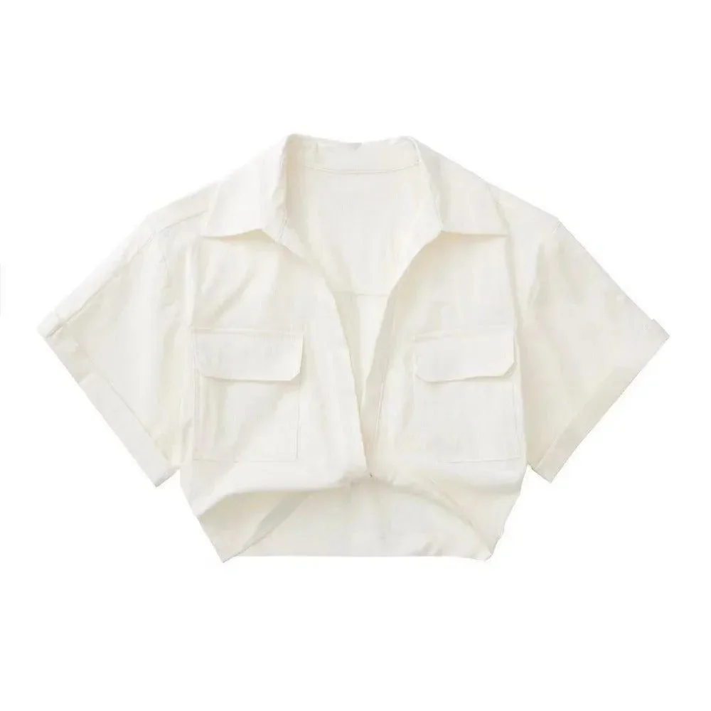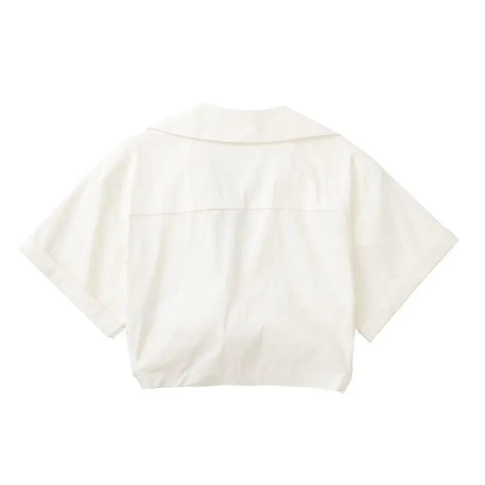 Elevate your summer wardrobe with the Ivory Linen Crop Shirt. This stylish top effortlessly combines comfort and elegance. Crafted from lightweight linen for breathability and a relaxed fit. The short sleeves provide a casual touch, while the crop design highlights your waist beautifully. Perfect for layering or solo wear, this shirt features a button-down front and classic collar for a timeless, versatile look. Whether for a night out or casual brunch, this shirt suits any occasion, pairing seamlessly with high-waisted bottoms. Discover style inspiration on Instagram @mermaid_way. Material: Cotton, Polyester. Enjoy a complimentary size exchange if needed.