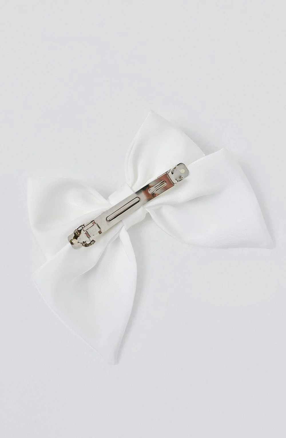 Elevate your style with the Ivory Satin Bow Hair Clip by T.I. This dreamy accessory in soft satin fabric features a bow design and a barrette clip for secure fit. Perfectly pairs with bow-adorned outfits like Elenora, Emilie, and Whitney. Add a playful touch to your look for occasions like birthdays, bridal events, brunches, evenings, parties, races, and more. Non-returnable item.