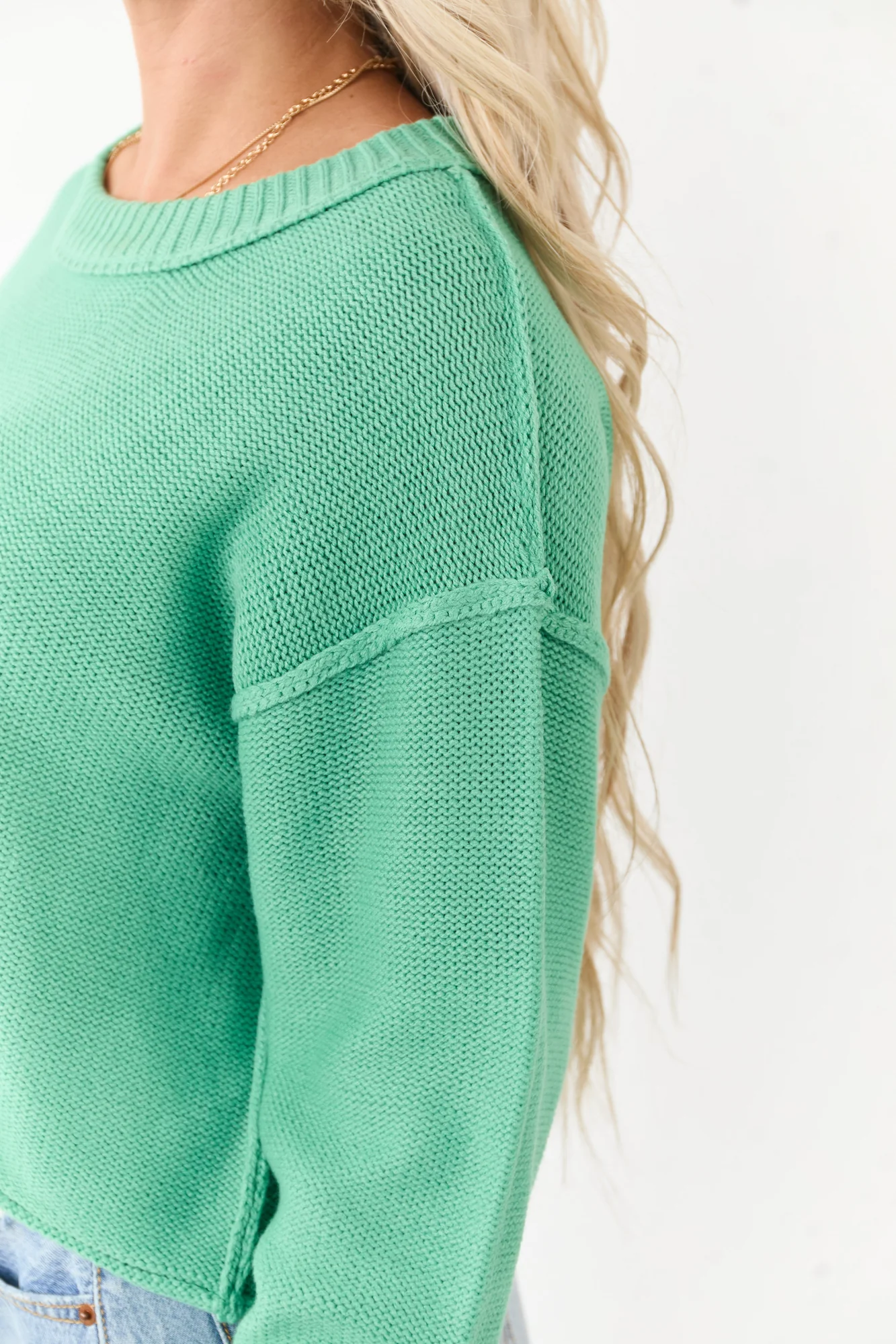 Stay cozy and stylish with our Kelly Green Relaxed Knit Sweater featuring a soft, stretchy knit fabric in a bright tone. This oversized sweater boasts a relaxed fit with wide boxy shape, drop shoulder, and semi-cropped length for a trendy look. Made of 100% Acrylic, it offers both comfort and style. Perfect for fall fashion! Available in sizes S, M, and L. Bust: 48-52″, Length: 19-20″, Sleeve Length: 25-26″.