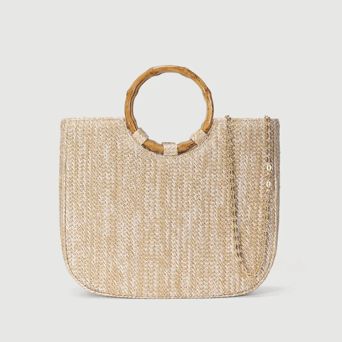 Experience the ultimate blend of tropical charm and functionality with the Khaki Bamboo Handle Handbag. Crafted for summer adventures, this handbag features bamboo handles for a natural touch and lightweight construction for all-day comfort. Its spacious interior easily accommodates beach essentials while maintaining style. Transition seamlessly from seaside outings to urban looks while enjoying its adaptability in neutral tones. Dimensions: L – 30 cm / 11.8 inch, W – 9 cm / 3.5 inch, H – 25 cm / 9.8 inch. Find styling inspiration on Instagram @mermaidway.