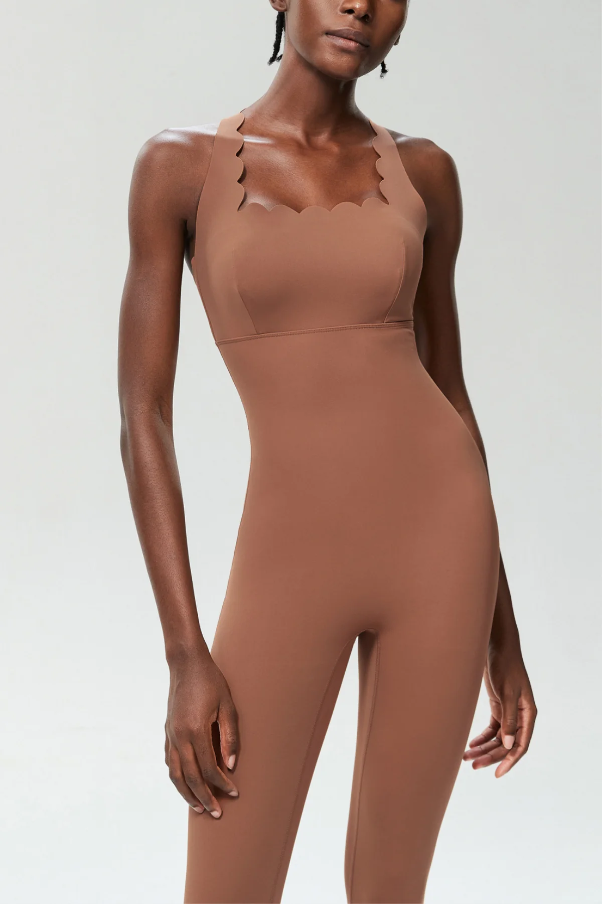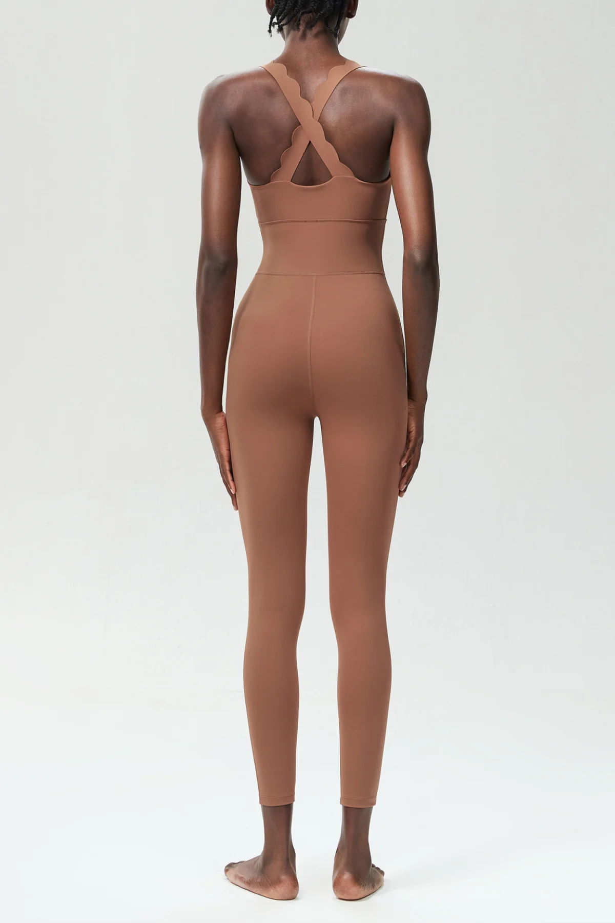Elevate your yoga practice with the Khaki Cross Design Yoga Jumpsuit. This stylish jumpsuit ensures unrestricted movement with its unique design. Crafted from 50% Polyester and 50% Cotton, it offers a slight stretch for comfort. Experience the perfect blend of style and functionality that every yogi needs. Gentle machine wash recommended. Note: Color variations may occur due to image lighting. Add this chic essential to your wardrobe today!