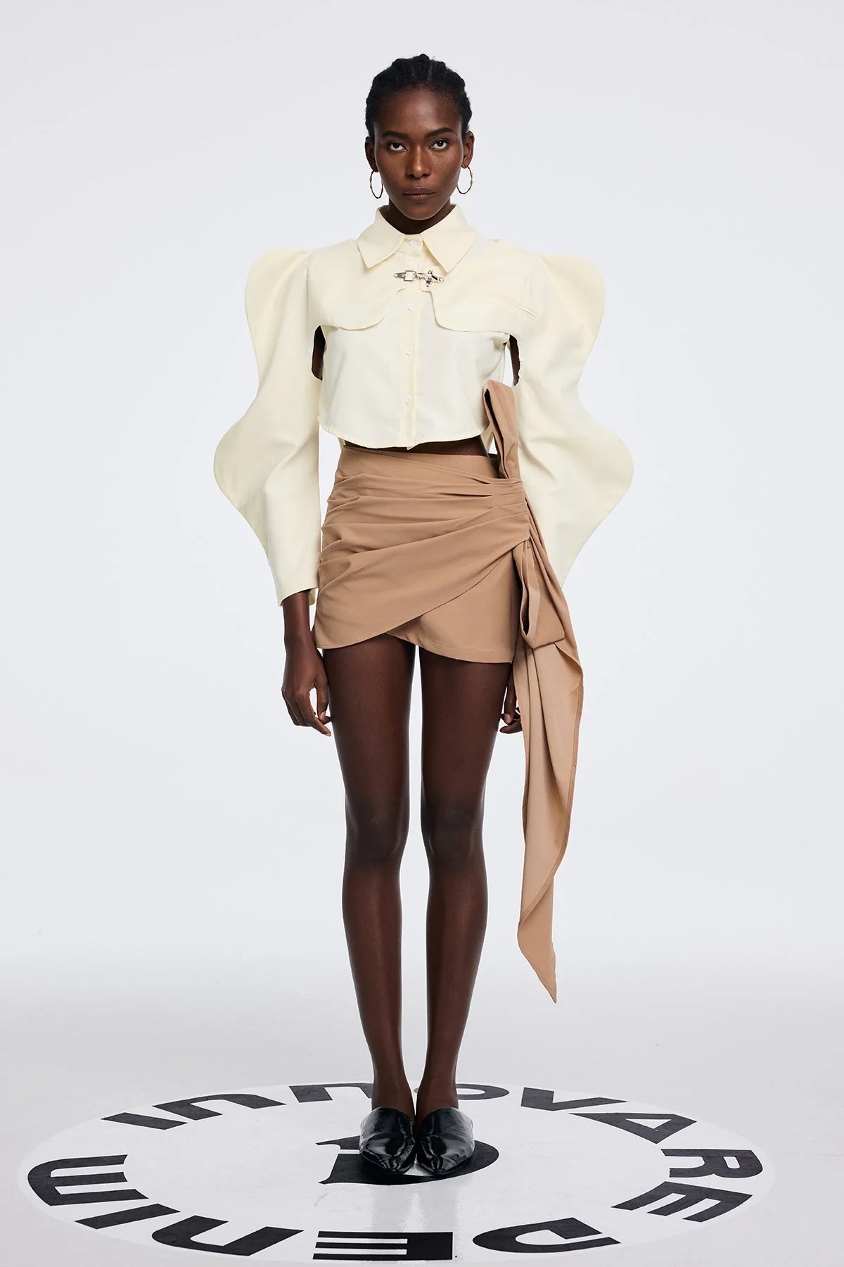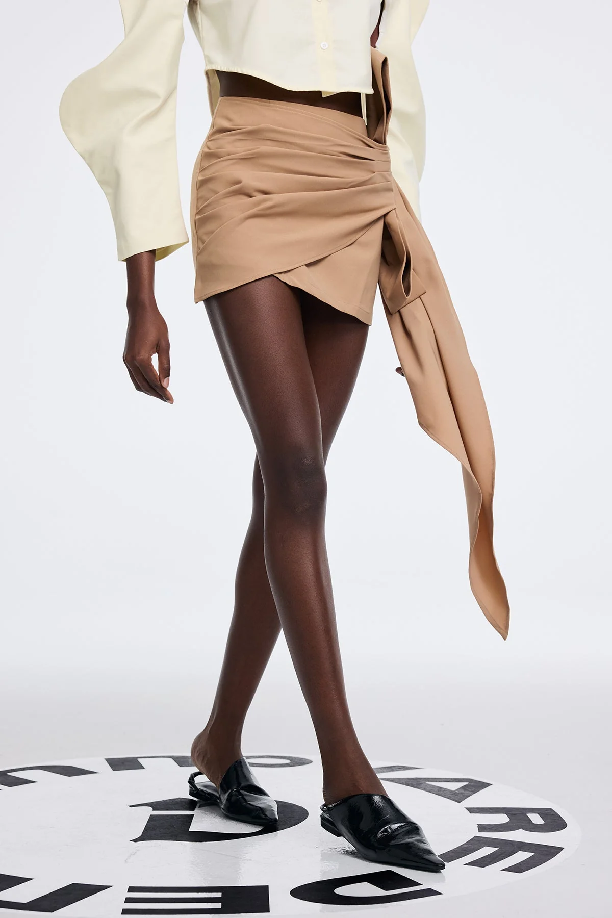 Elevate your wardrobe with this must-have khaki fringe skirt featuring Aparicions signature ruching and bow detailing. Crafted from high-quality 50% Polyester, 50% Cotton material, this skirt offers a perfect blend of style and comfort. Its non-stretch fabric is easy to care for with gentle machine wash. The color may vary slightly due to lighting in images, but its charm remains unchanged.