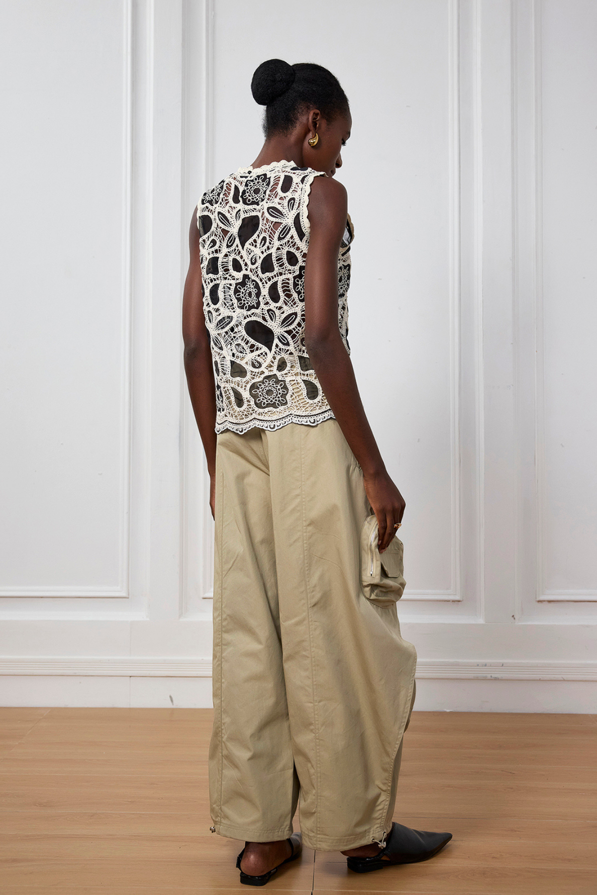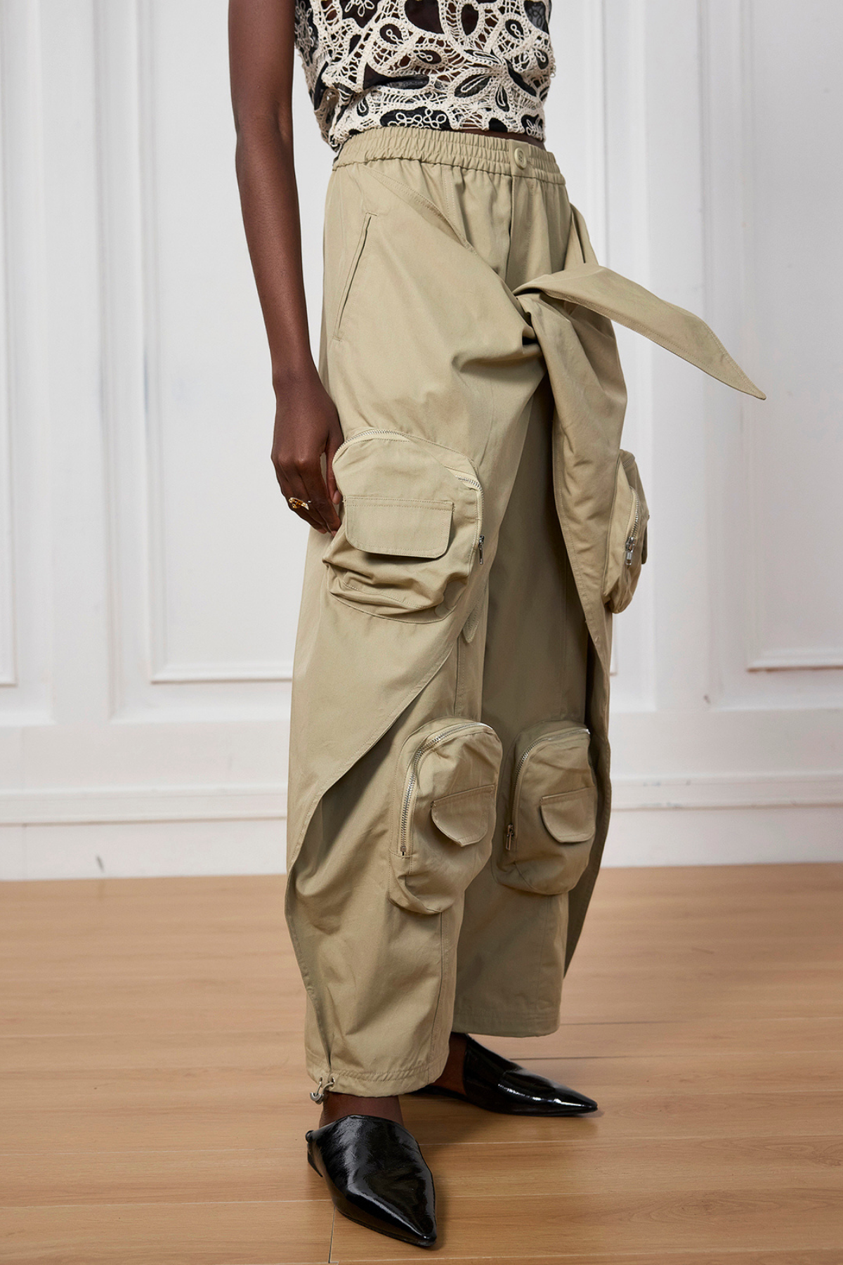 Elevate your style with our Khaki Lace-Up Cargo Pants . These versatile and chic pants feature convenient pockets and a stylish lace-up design that adds an edgy touch to any outfit. Crafted from high-quality 100% Polyester for comfort and durability, these non-stretch pants are perfect for all-day wear. Whether for a casual or urban edge look, these cargo pants are a must-have addition to your wardrobe. Available in Size S. Care Instructions: Gentle machine wash. Please note, color may vary due to lighting during photography.