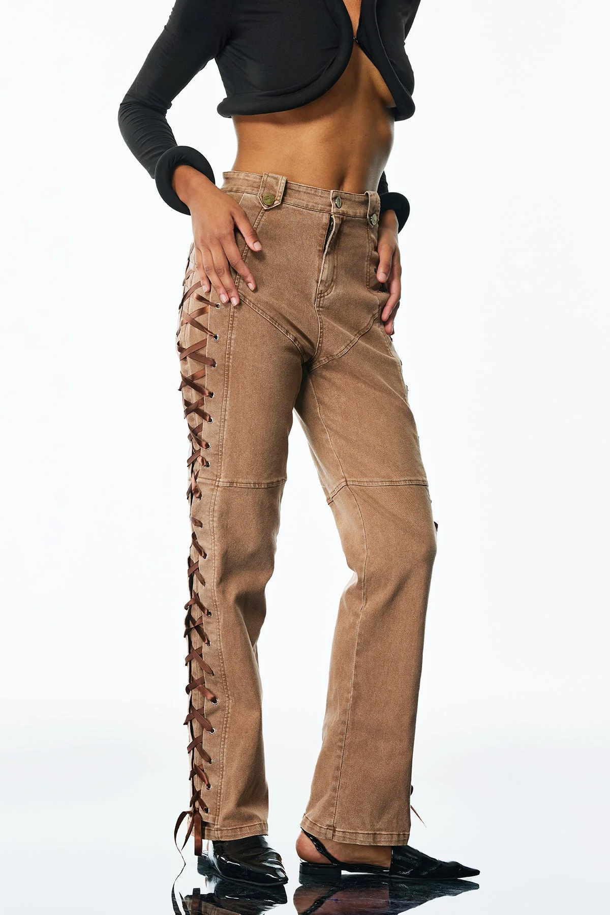 Elevate your denim collection with our stylish Khaki Lace-Up Skinny Jeans. Crafted from high-quality 50% Polyester and 50% Cotton blend, these jeans offer both comfort and durability. The unique lace-up design adds a touch of trendiness to any outfit, making it perfect for daily wear. This non-stretch denim is machine wash-friendly. Enhance your wardrobe with this statement-making piece that exudes style and confidence.