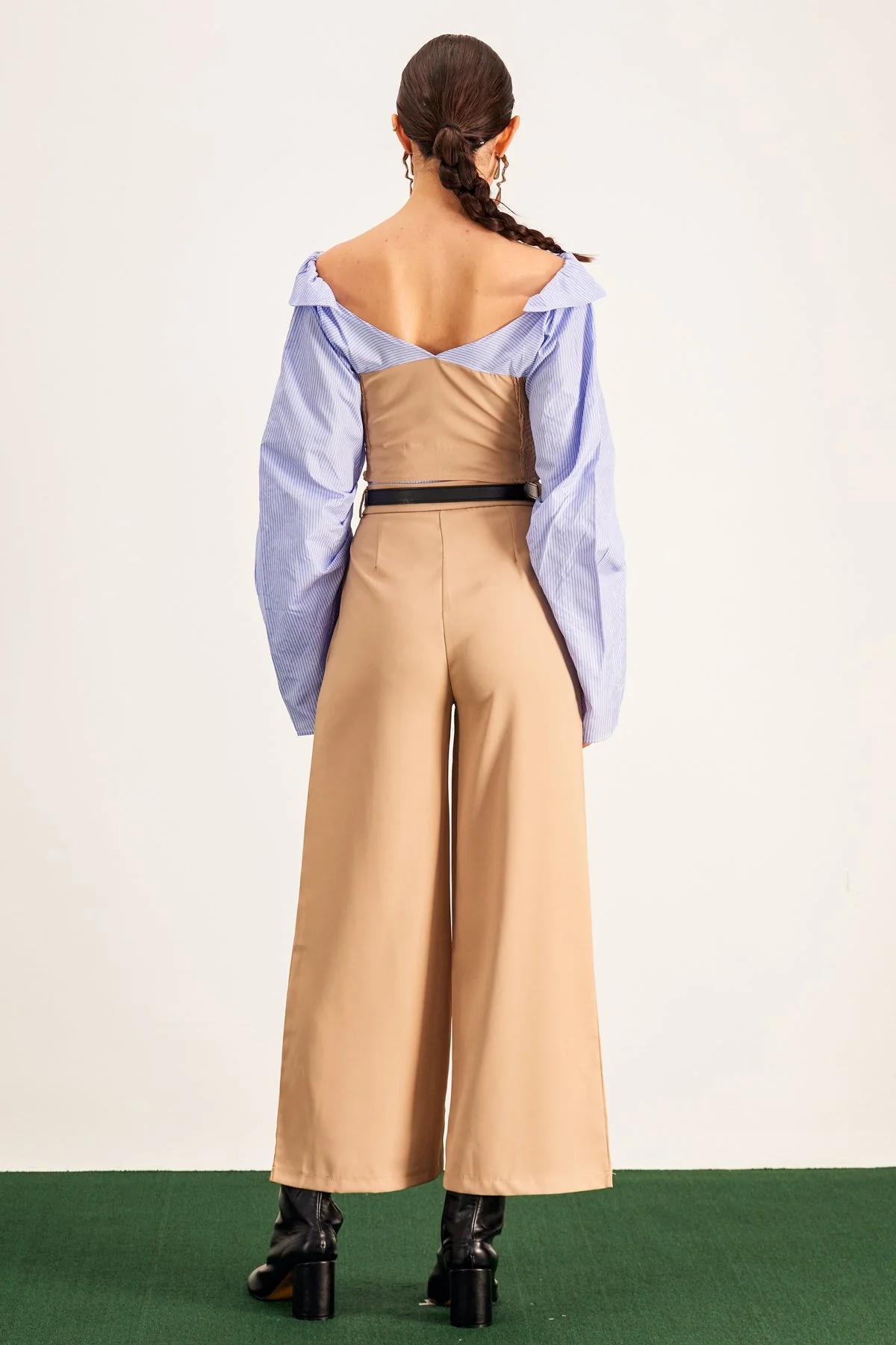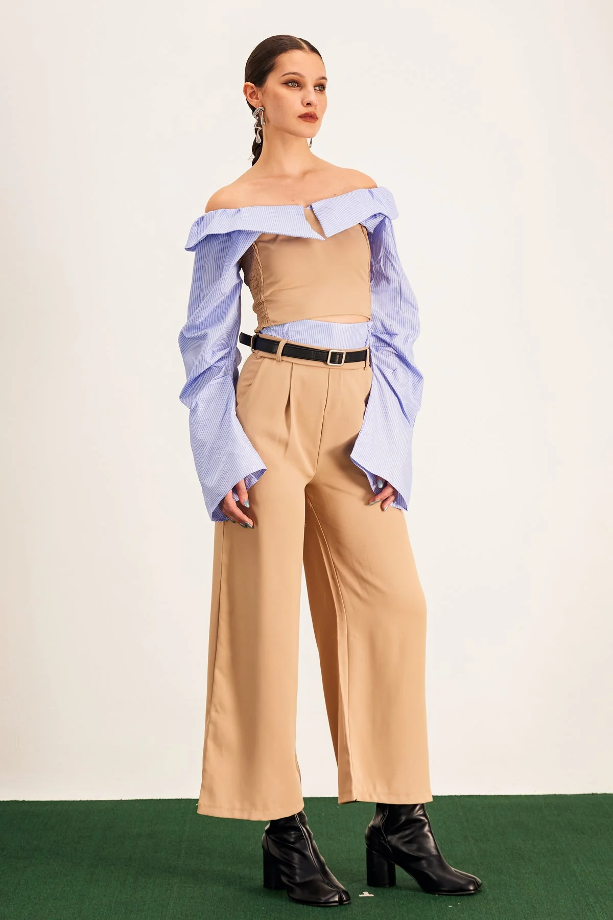 Elevate your wardrobe with this stylish Khaki Off Shoulder Buckle Pants Set . Crafted from high-quality fabric with a flattering off-shoulder design and buckle detailing, this set combines elegance and comfort. Suitable for any occasion, the set exudes sophistication and confidence. Material: 50% Polyester, 50% Cotton. This non-stretch set is easy to clean with a gentle machine wash. Please note that color may vary due to lighting variations in images.