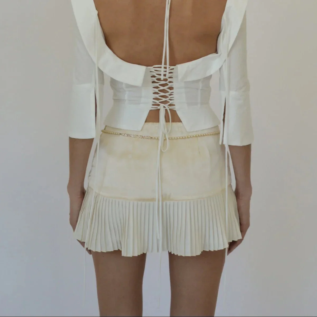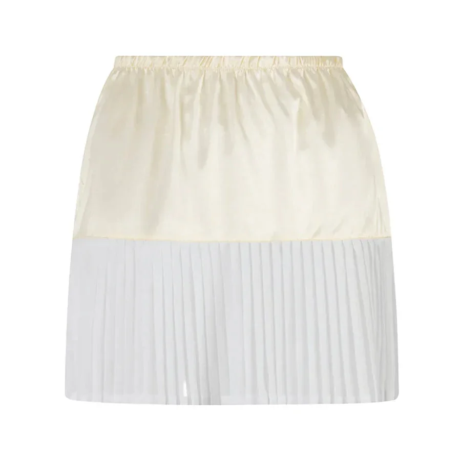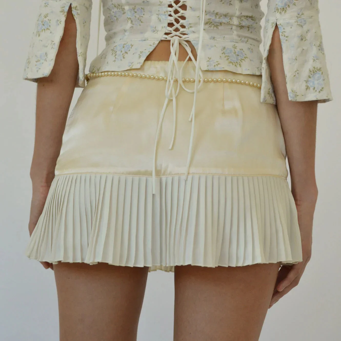 The Khaki Satin Pleated Mini Skirt is a low-rise micro mini made of soft satin, featuring delicate pleating along the hem and a slightly A-line silhouette for a romantic and playful look. Perfect for creating a cottagecore meets flirty outfit, this skirt adds just the right amount of flirt to your ensemble. This skirt is designed for those who wish to turn heads and embrace a flirty, romantic style. For more style inspirations and outfit ideas, visit our Instagram @mermaid_way. Enjoy a complimentary exchange for a different size if needed.