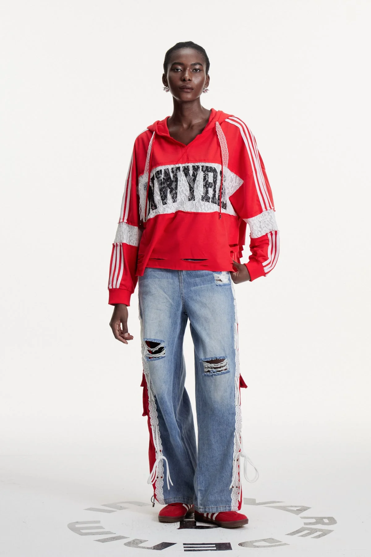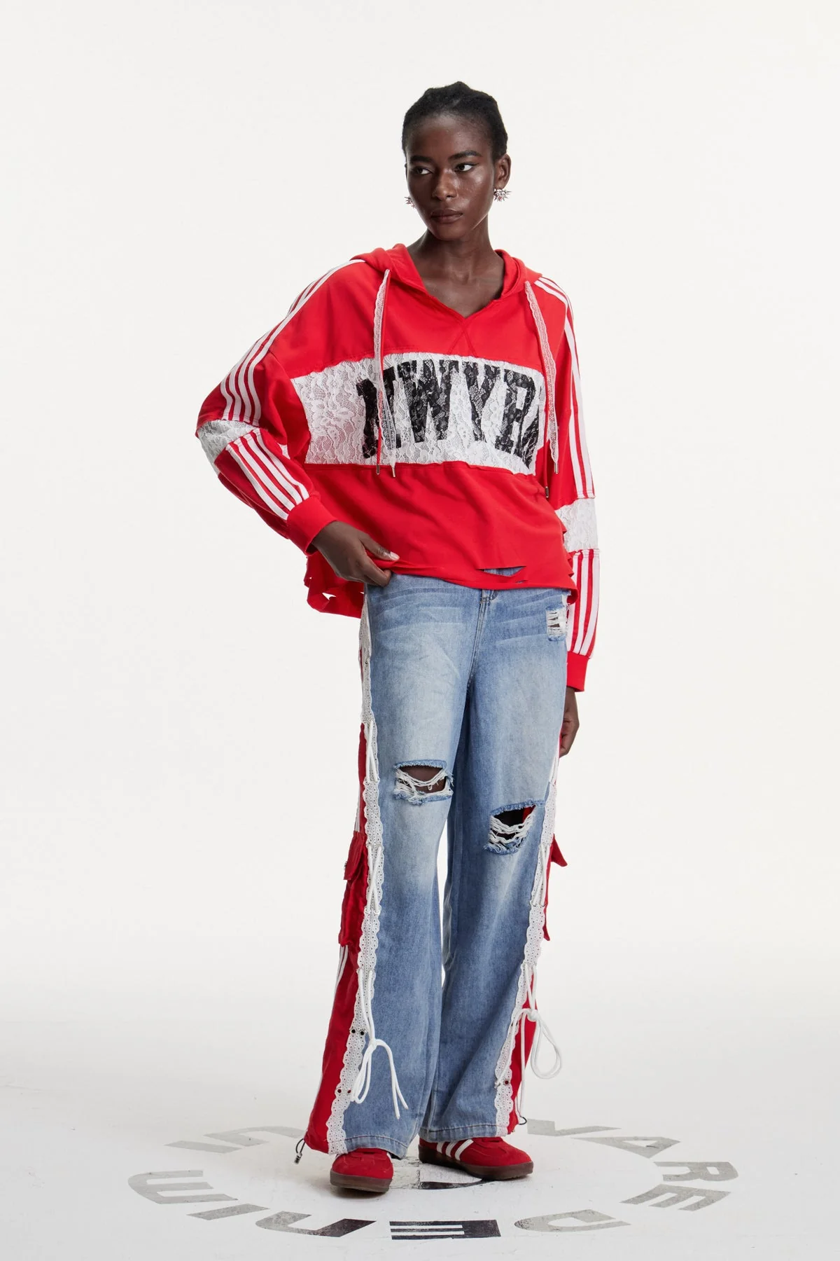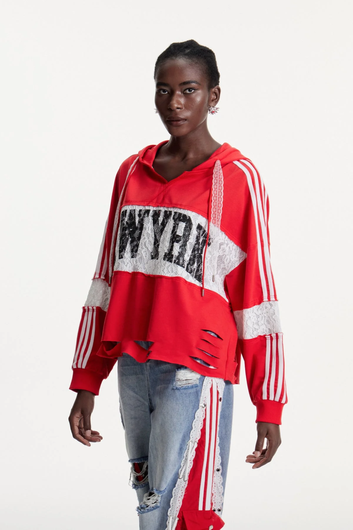 Step up your casual wardrobe with the Lace Print Hooded Top in Red. This top combines intricate lace patterns with a hooded design, offering style and functionality in one. Designed for everyday wear, it boasts lightweight fabric for breathability and versatile styling. Whether layered or worn solo, it exudes an elegant touch with expert craftsmanship. Ideal for blokecore enthusiasts seeking refined casual wear. The color may vary due to lighting conditions. Stretch Factor: Non-stretch. Care: Gentle machine wash.
