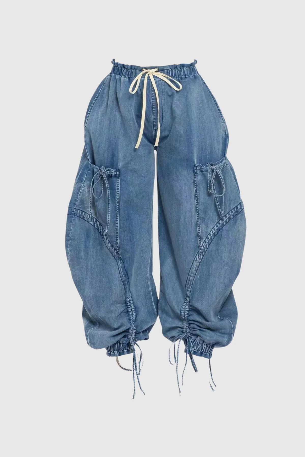 Experience a twist on classic denim with these Lace-Up Drawstring Denim Jeans. The trendy lace-up design adds a unique touch, while the drawstring waist ensures a comfortable and customizable fit. Made of 100% Polyester, these jeans offer a modern, stylish look perfect for fashion-forward individuals. These non-stretch jeans are easy to care for with a gentle machine wash. Please note that colors may vary slightly due to lighting. Elevate your wardrobe with these chic denim jeans!