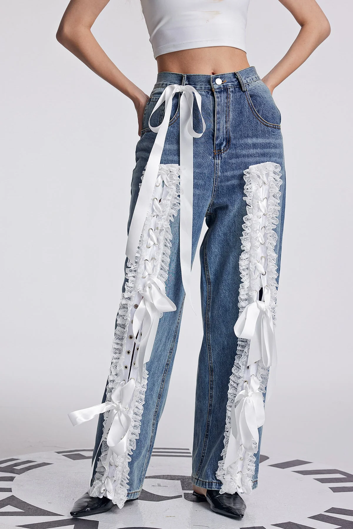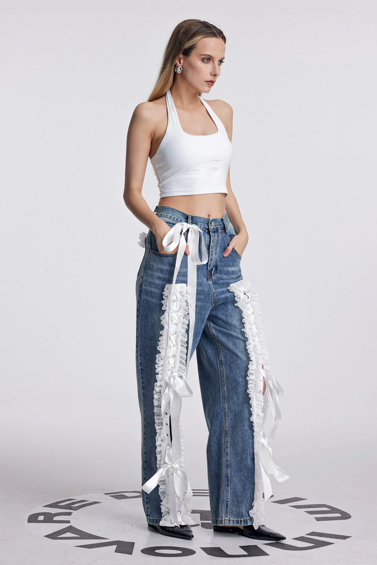 Elevate your style with our Amondi Lace Deconstruct Lace-Up Jeans. Crafted with precision using 50% Polyester and 50% Cotton, these jeans offer comfort and style. The unique lace-up design enhances your figure while providing a fashionable touch. Embrace the perfect blend of fashion and functionality with our Amondi Lace Jeans. Please note: Color may vary due to lighting.