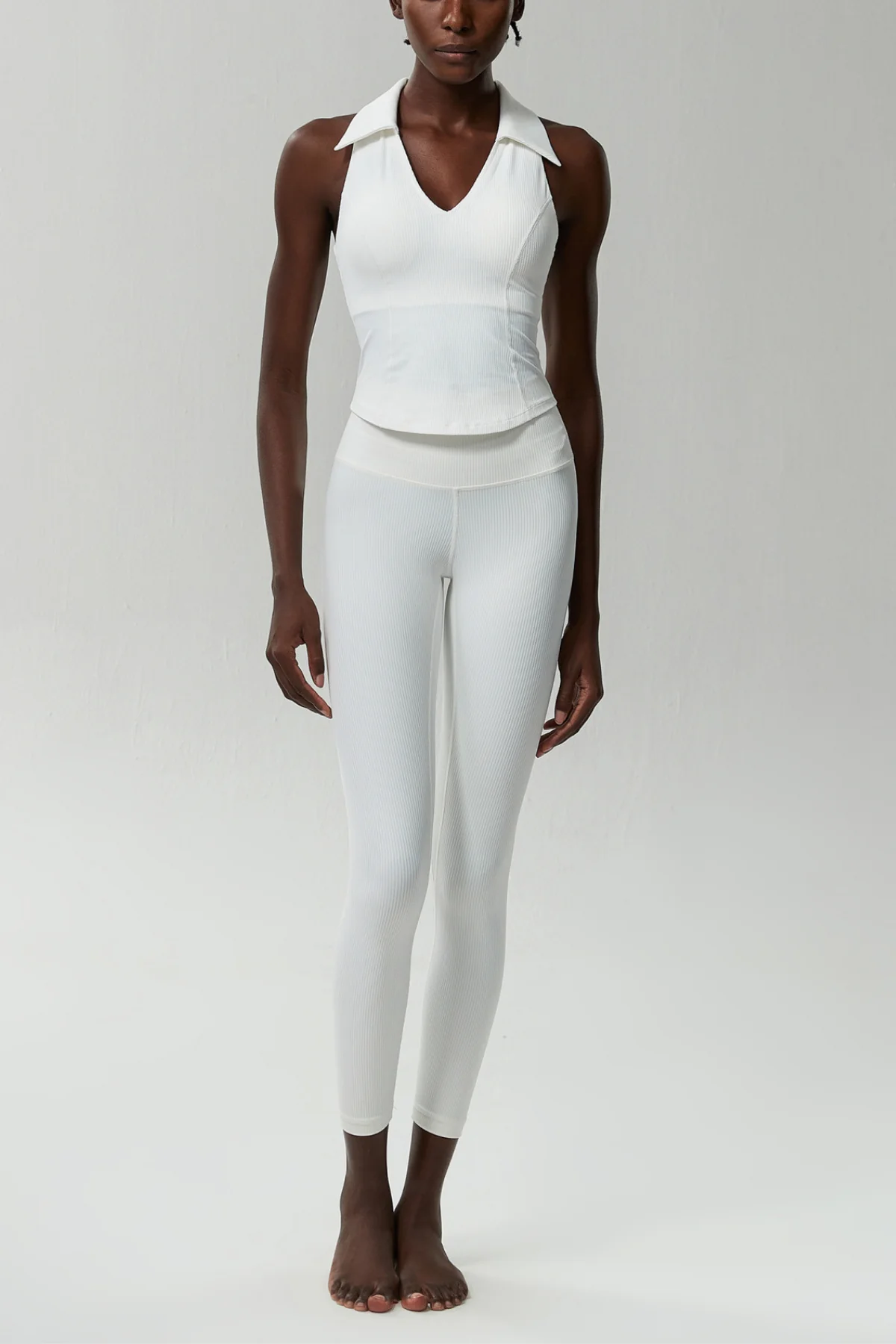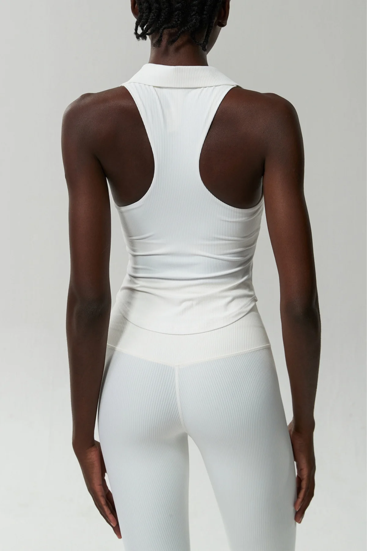 Elevate your wardrobe with our Lapel Sleeveless Bodycon Top in White! Crafted from premium fabric with a timeless lapel design and figure-hugging fit, this top is perfect for achieving a sophisticated and chic look. Ideal for versatile styling, this top exudes elegance for any occasion. Made of 50% Polyester, 50% Cotton with a slight stretch for comfort. Clean with a gentle machine wash. Experience color variation due to image lighting. Discover the perfect fusion of style and comfort!