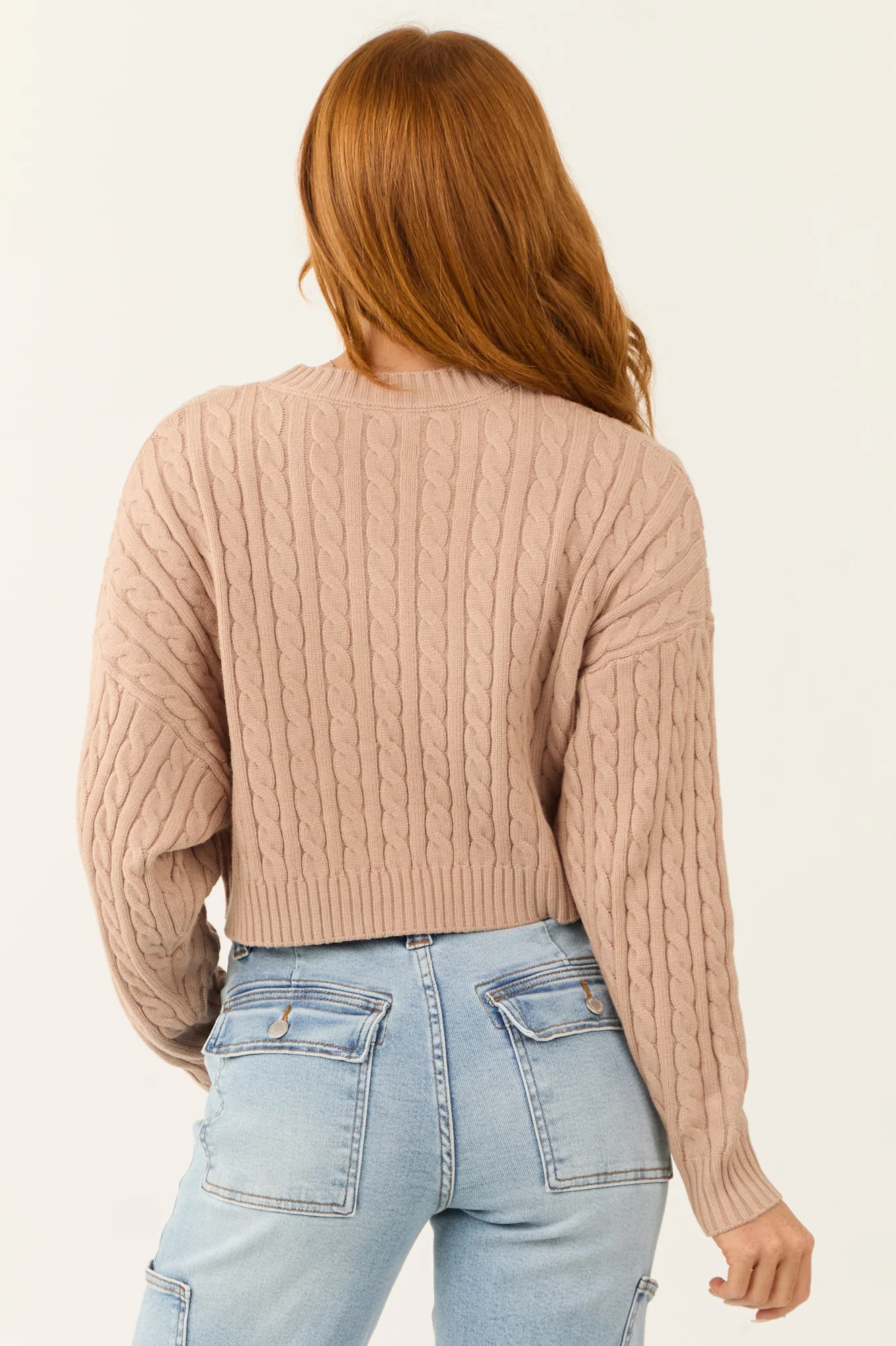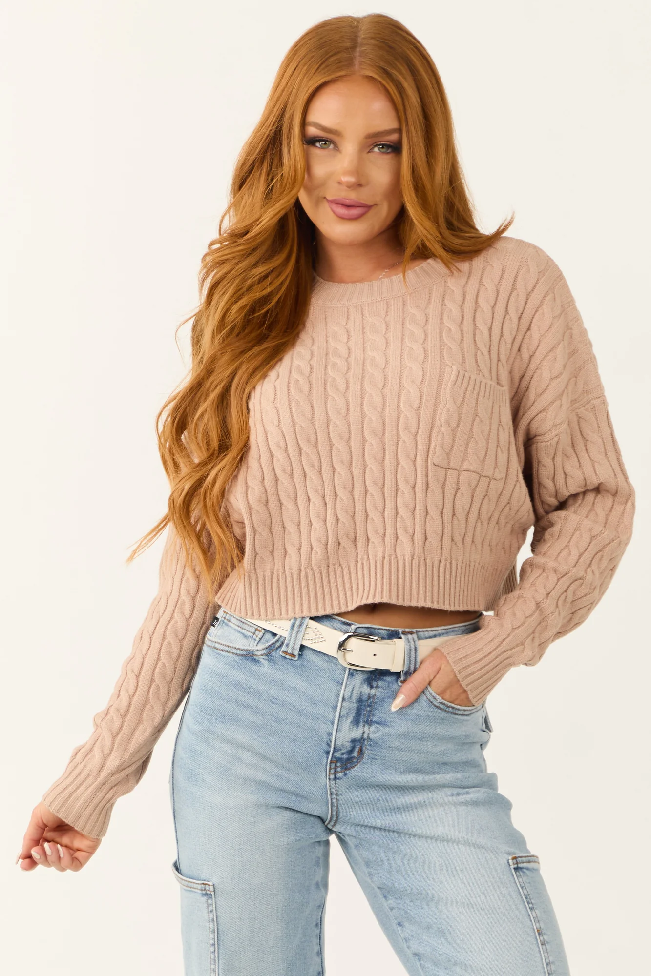 XS S M L Sleeve: 27.25″ 28″ 28.75″ 29.5″ Length: 16.75″ 17.5″ 18.25″ 19″ Bust: 45″ 46″ 47″ 48″ Wide boxy fit Stretchy cable knit Long balloon sleeves Chest pocket Drop shoulder Ribbed banded trim Crew neckline Self: 42% Rayon, 28% Polyester, 30% Nylon Imported Note: Hand wash cold color separate, do not bleach, lay flat to dry, iron if needed. Model is wearing a size Extra SmallModel’s Profile: Size 1, Height 5’5″, Bust 31″, Waist 24″