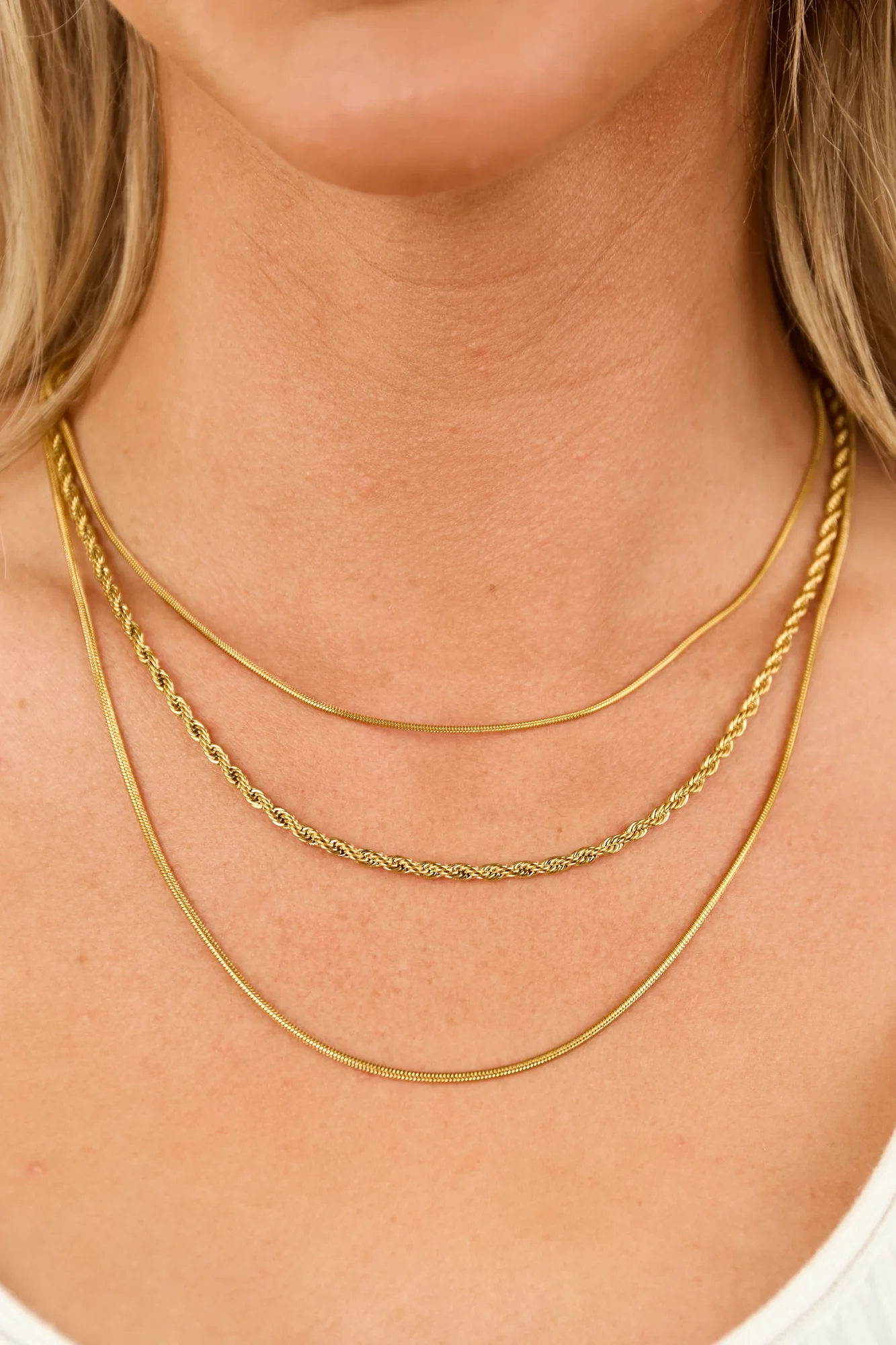 Enhance your style with this exquisite set of gold-plated stainless steel chain necklaces. The collection features rope and snake chain designs, with a lobster clasp closure for secure wear. Set includes three chains: 14″, 16″, and 18″ lengths, with a 2″ extension for adjustable fit. Elevate your look effortlessly with this imported accessory.