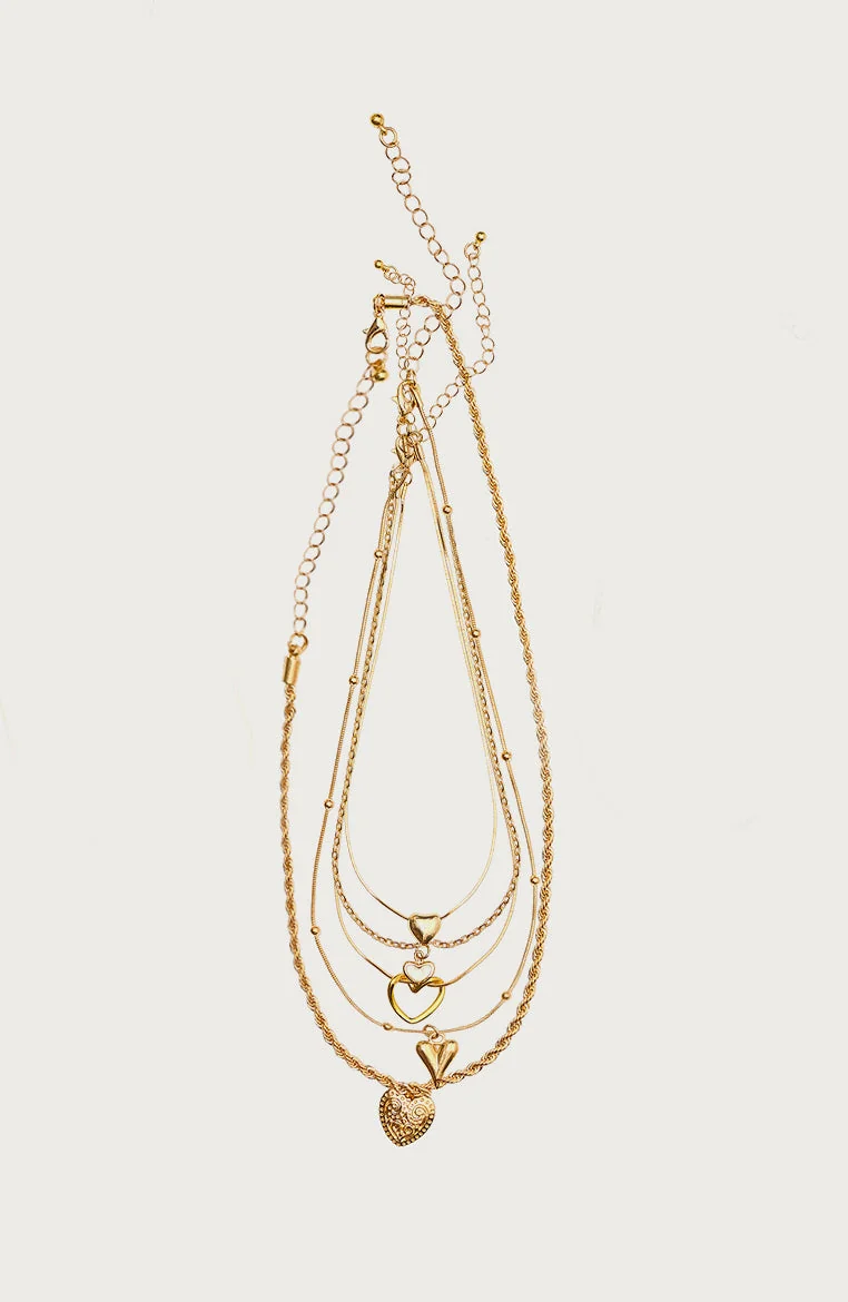 Enhance your jewelry collection with this exquisite Layered Heart Pendant Necklace crafted in gold tone metal. The necklace features intricate heart pendants that add a touch of sophistication and elegance to your outfit. Measuring 14.2 inches in length, this piece is a must-have accessory for any occasion. To maintain its brilliance, avoid direct contact with perfume, soap, or creams. Elevate your style with this stunning necklace today!