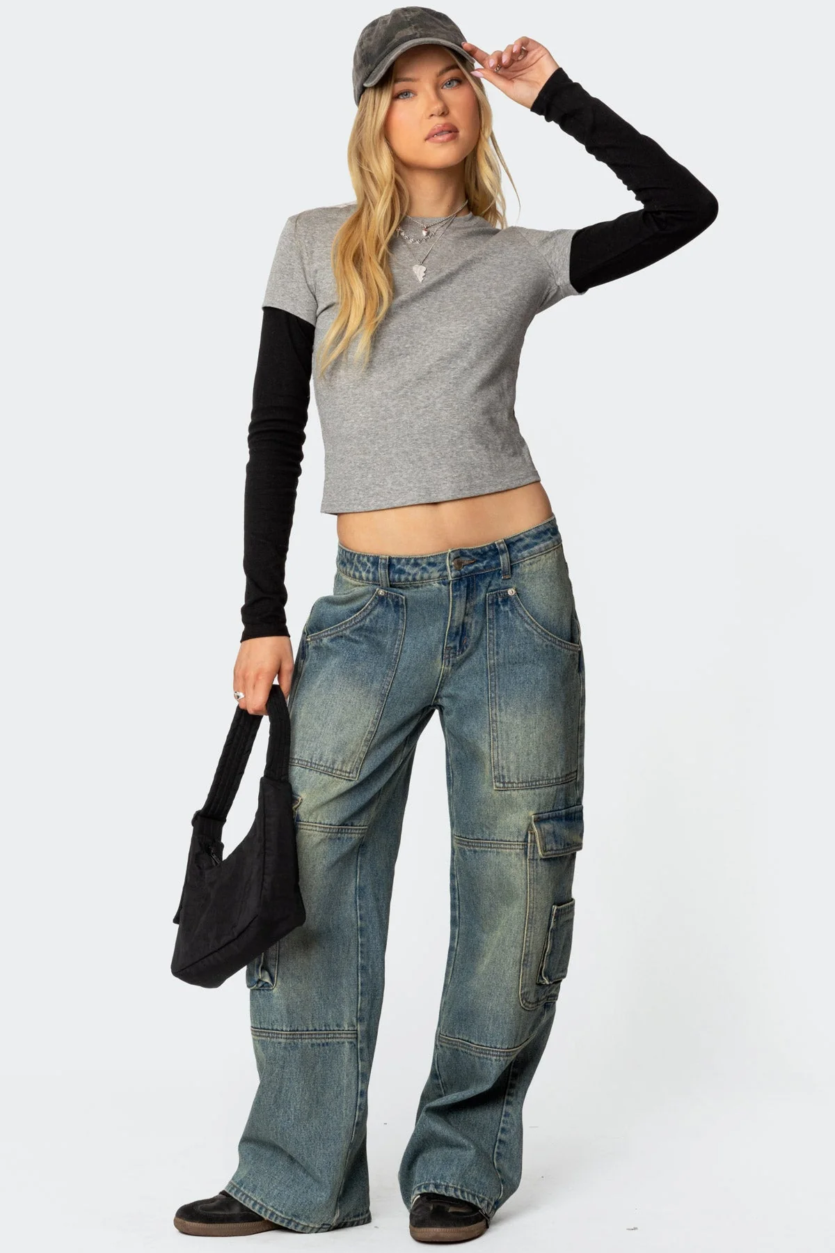 Indulge in style and comfort with our Layered Long Sleeve Shirt in Gray Melange. This T-shirt features a contrast design, crafted from a cozy blend of cotton and spandex for a perfect fit. Machine washable for easy care. Elevate your everyday look effortlessly!