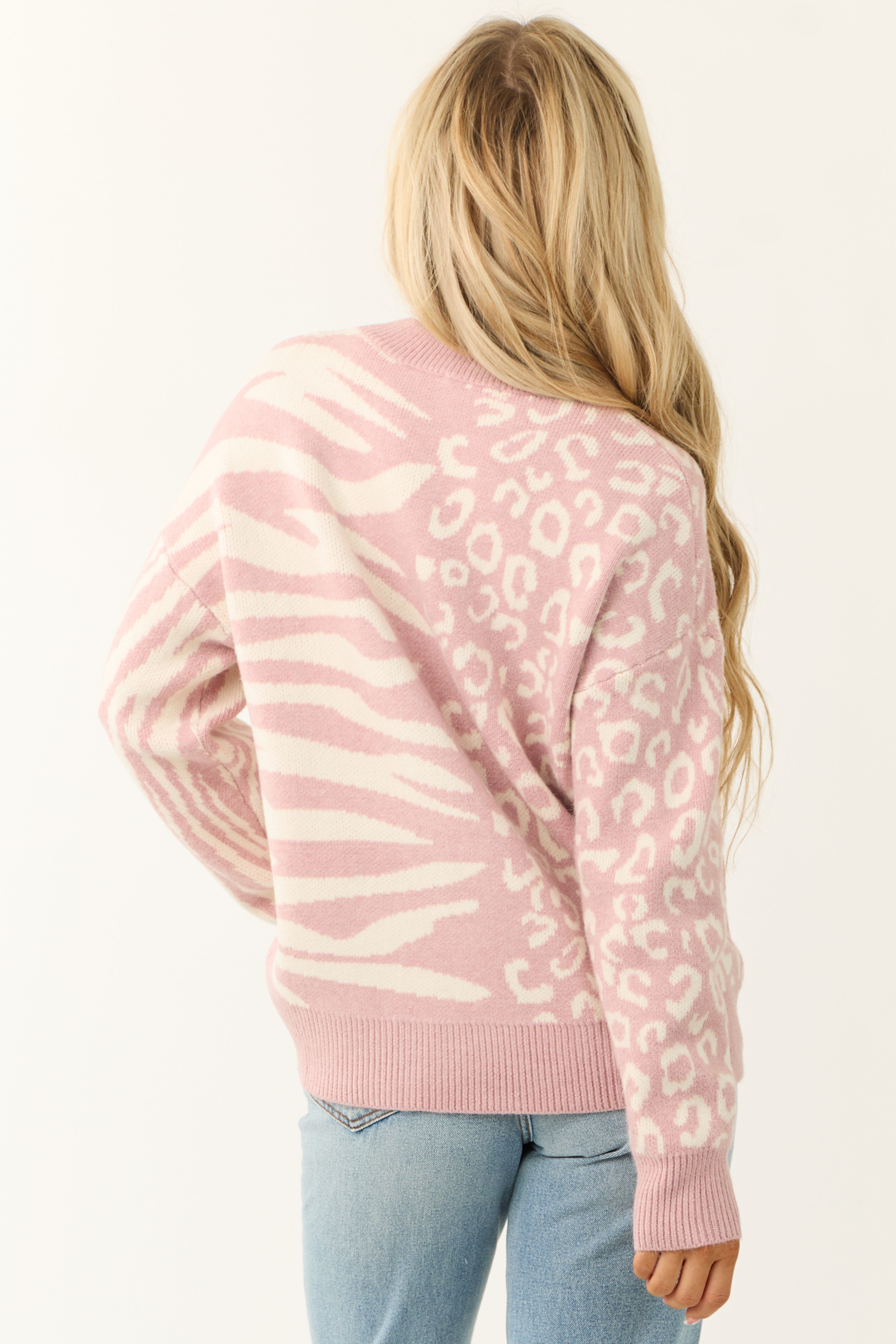 Indulge in the wild charm with our Leopard and Zebra Print Sweater in Baby Pink. Crafted from a stretchy ribbed knit blend, this top guarantees comfort and style. The long sleeves, crew neckline, and drop shoulder add a trendy touch. Pair it with your favorite bottoms for a chic ensemble that stands out. Hand wash cold to preserve the gorgeous print.