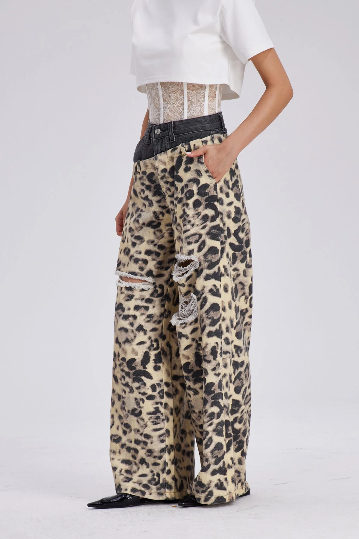 These Leopard Print Cutout Jeans blend bold leopard design with expert craftsmanship. Featuring strategically placed cutouts, these jeans offer a contemporary edge while ensuring durability and comfort for everyday wear. Elevate your style with this statement piece that combines fashion-forward detailing. The non-stretch denim is easy to care for with a gentle machine wash. Please note that color may vary due to lighting in images. Discover the perfect blend of fashion and comfort with these unique jeans.