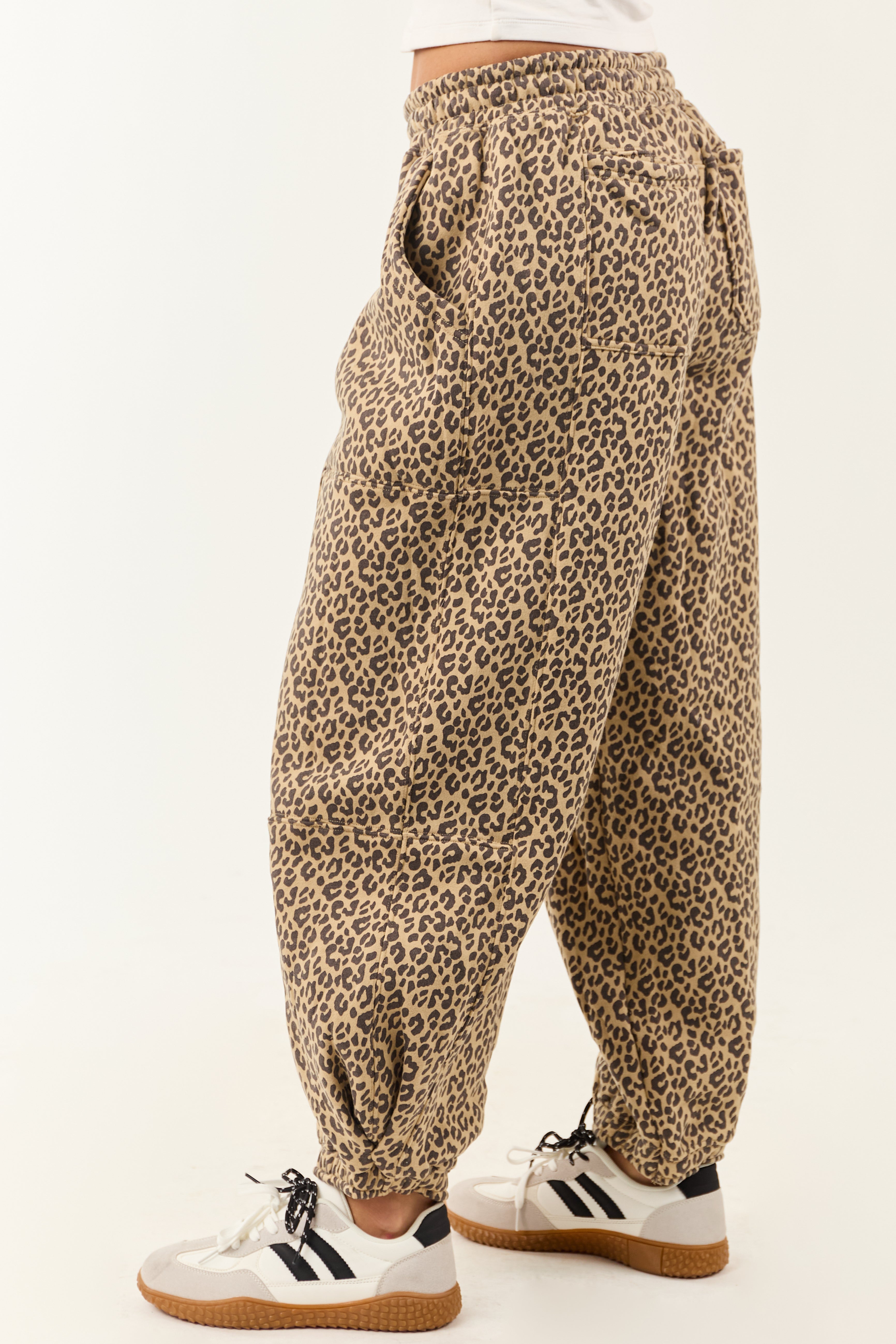 Stay cozy and fierce in these high-quality leopard print fleece lined sweatpants. Perfect for warmth and comfort, these barrel-style sweatpants feature a plush fleece lining. With a smocked waistband, drawstring, elastic cuffs, and 4 pockets, these high-waisted pants are a blend of 80% Cotton and 20% Polyester. Garment specs for size small: Waist – 28 inches, Hip – 46 inches. Embrace style and comfort with these trendy sweatpants .