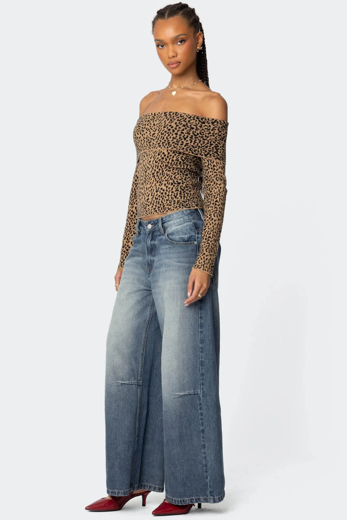 This cozy Leopard Print Off Shoulder Sweater features long sleeves and a fold-over neckline in a stylish knit fabric that is both trendy and comfortable. Made of acrylic, this sweater is machine washable for easy care. Whether you pair it with jeans for a casual look or dress it up for a night out, this sweater is versatile and chic. Get your hands on this must-have wardrobe piece and stay warm in style all season long.