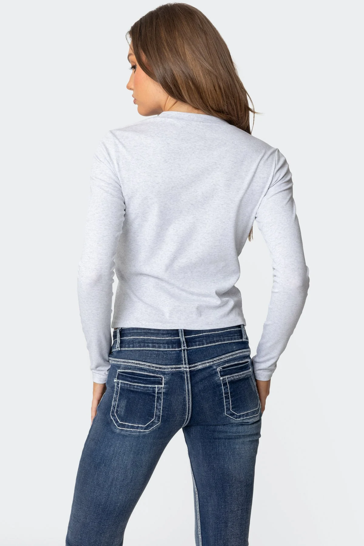 Stay stylish in this Leopard Print Long Sleeve T-Shirt in pink and gray melange. Made of comfortable cotton and spandex blend, this shirt is perfect for everyday wear. The graphic print adds a trendy touch to your outfit. Machine washable for easy care. Available in sizes XS to XL.