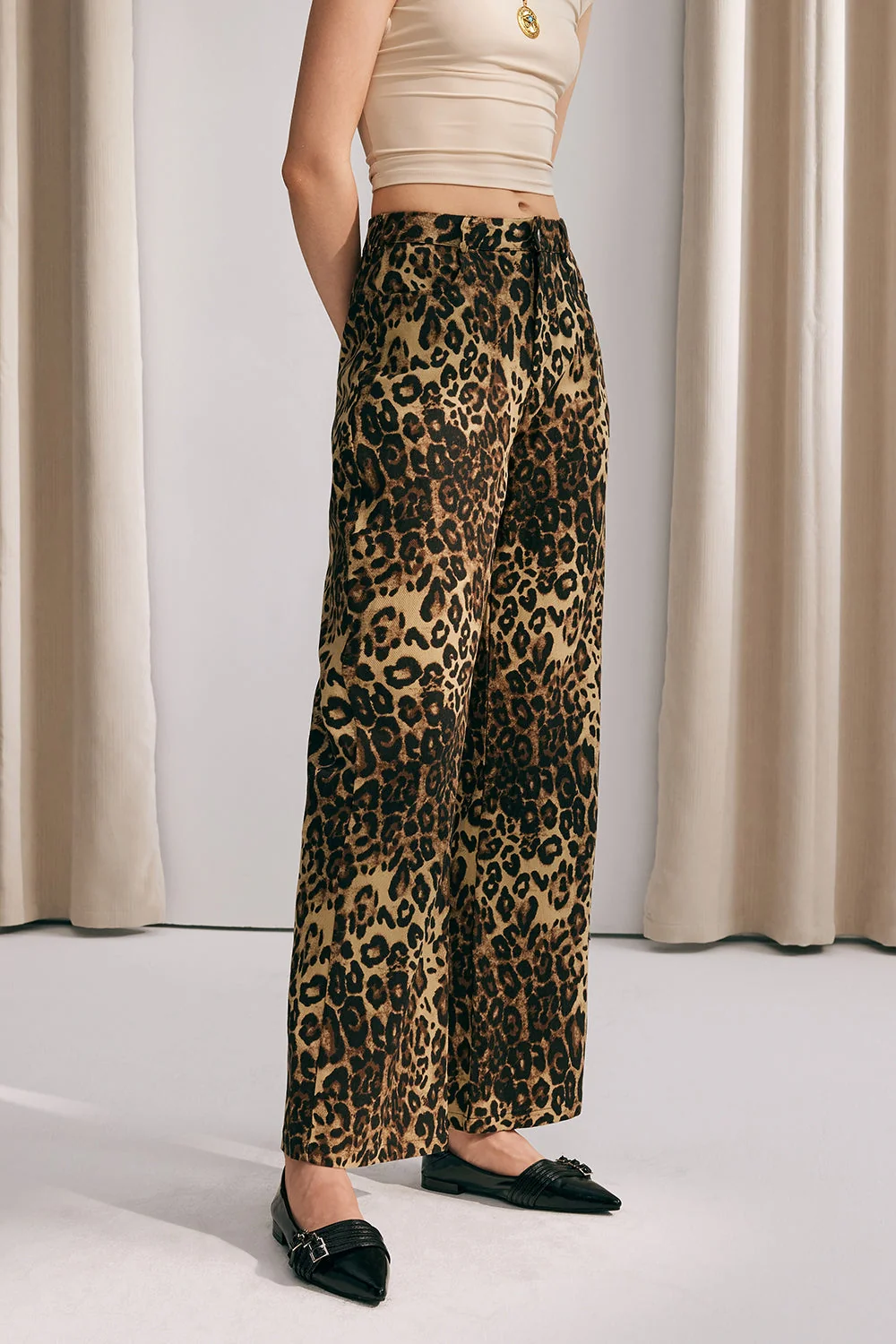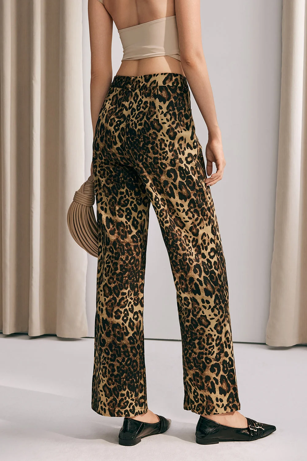 Unleash your wild side with our Leopard Print Low Rise Fashion Pants. Stand out and make a bold statement with these high-fashion pants. The low-rise design and fierce leopard print add a touch of adventure to any outfit. Crafted from 100% Polyester for durability and style. These pants are versatile and perfect for any occasion whether its a casual day out or a night on the town. Express your unique style confidently with these trendy pants. Material: 100% Polyester | Stretch Factor: Non-Stretch | Care Instructions: Gentle machine wash. The actual pant color may slightly vary due to lighting in images.