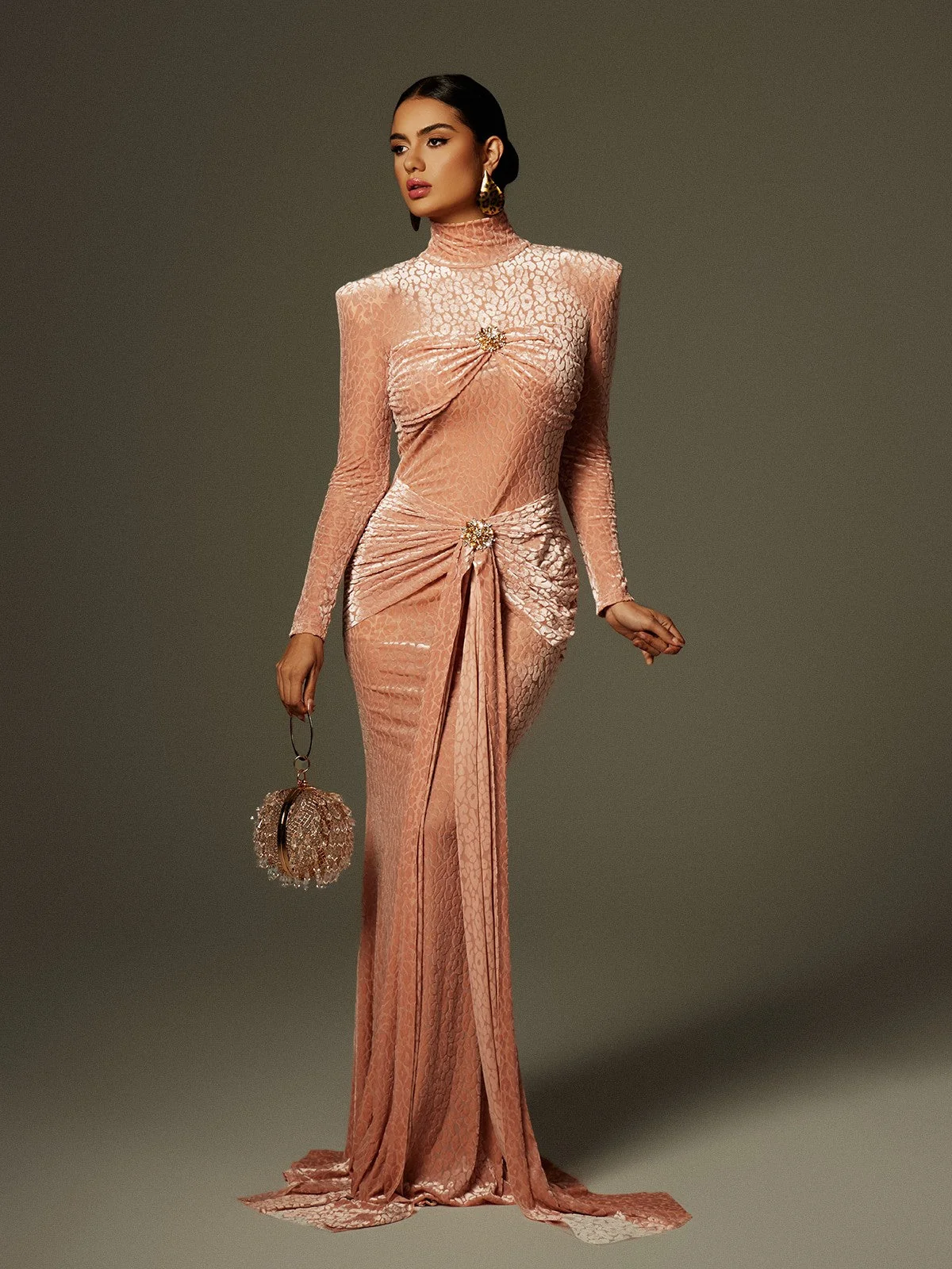Elevate your wardrobe with our Leopard Print Rhinestone Maxi Dress! Embrace your wild side with the striking leopard pattern and sparkling rhinestones. Whether its a cocktail party or a wedding, this dress ensures you shine with confidence. Made from 100% Polyester with an invisible zipper at the back. Please note that color variations may occur due to lighting. Available in sizes S, M, and L.