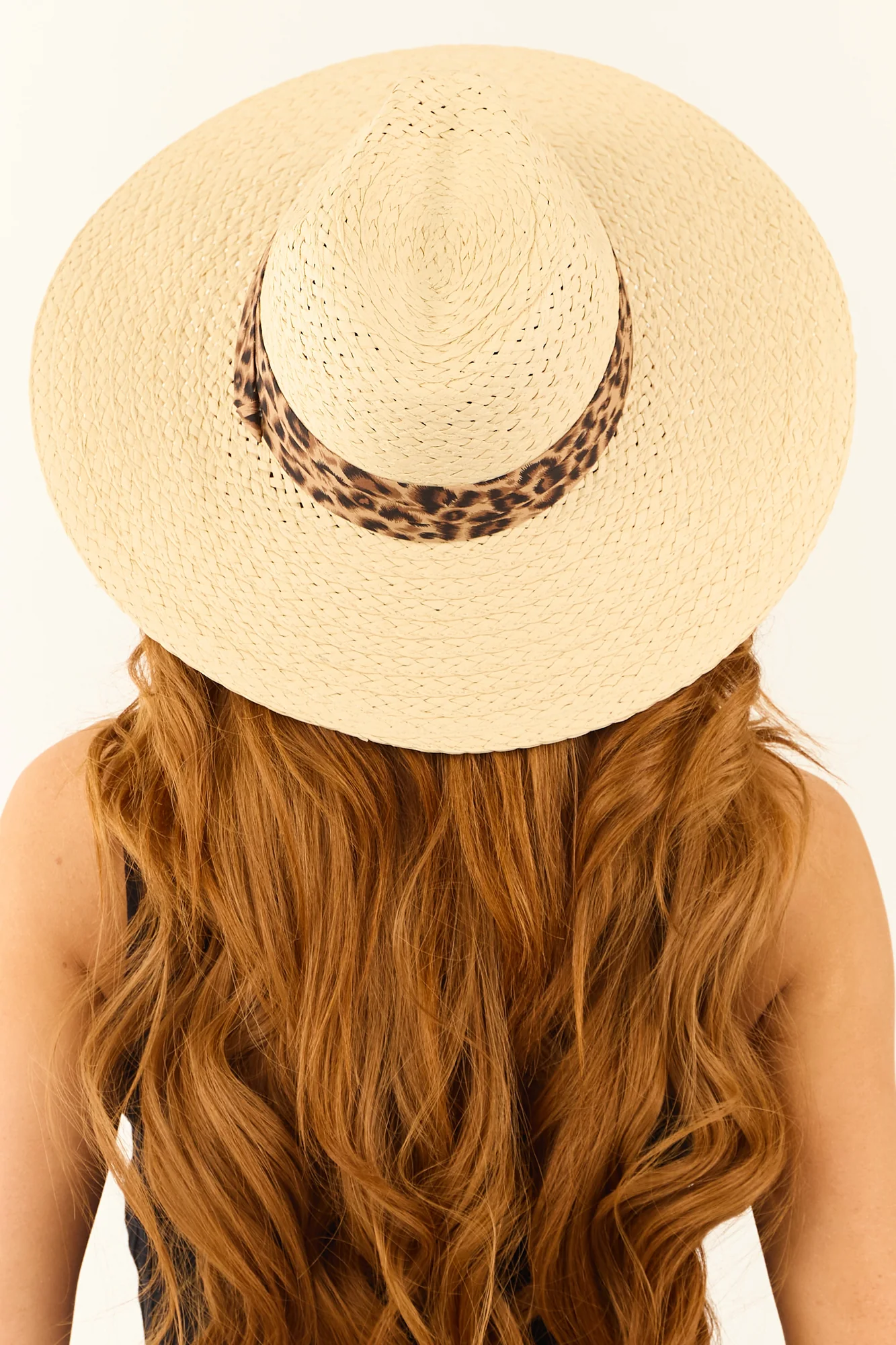 Stay stylish under the sun with our Leopard Print Straw Sun Hat in buttercream color. Made of woven straw, this hat features a dented crown, 5.5″ height, 3.5″ brim, and 23.5″ circumference. Crafted from 100% paper straw, this imported accessory is perfect for Spring and Summer.
