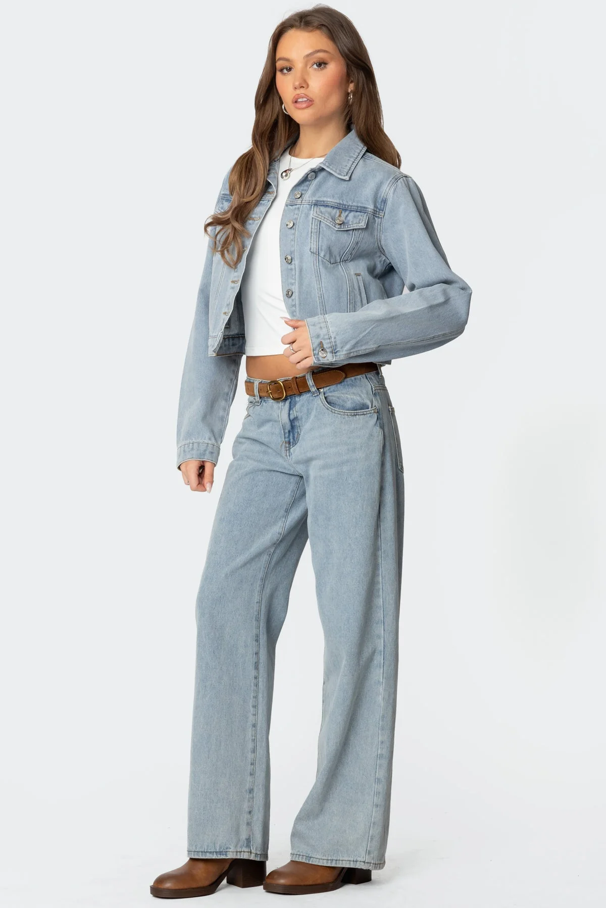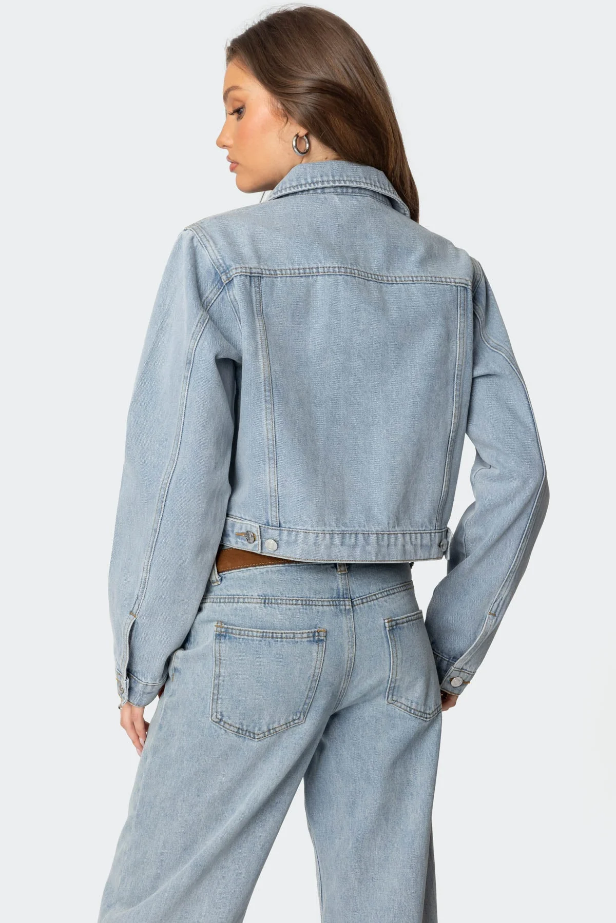 This stylish light blue denim jacket features a collared design, pocket detailing, contrast stitching, and front button closures. Made from a blend of cotton and polyester, it offers both style and comfort. Machine washable at maximum 30ºC with like colors. Enhance your wardrobe with this versatile jacket! Available in sizes XS, S, M, L, and XL.
