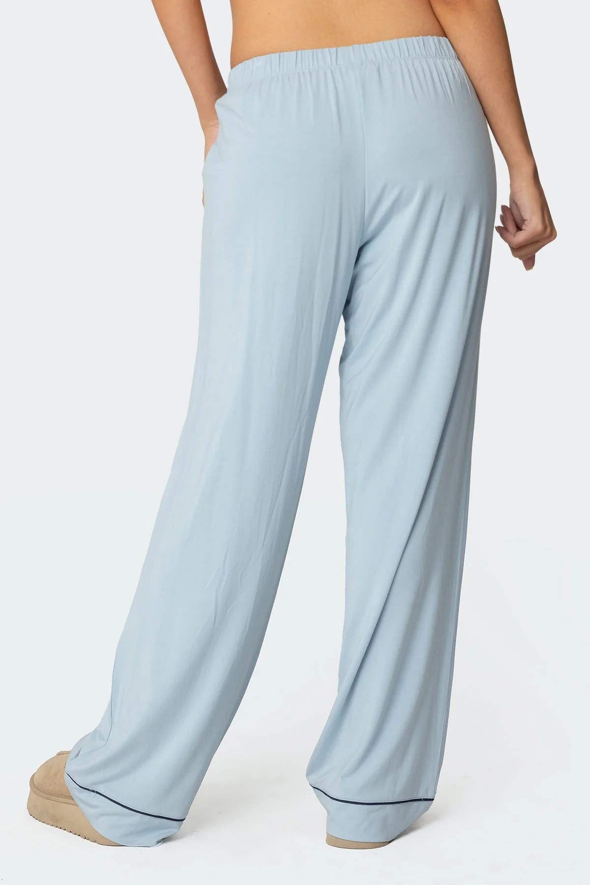 Upgrade your sleepwear collection with our Light Blue Sleepwear Pants crafted with a comfortable elastic waistband for a perfect fit. These pants feature a straight leg design and are made of a blend of Rayon and Spandex, ensuring softness and stretch for a cozy nights sleep. The model is wearing size S with an inseam of 31.1 inches, suitable for heights up to 59″. Easy to care for, machine wash at a maximum of 30ºC, avoid bleach, tumble dry, or dry clean, and iron gently at a maximum of 110ºC.