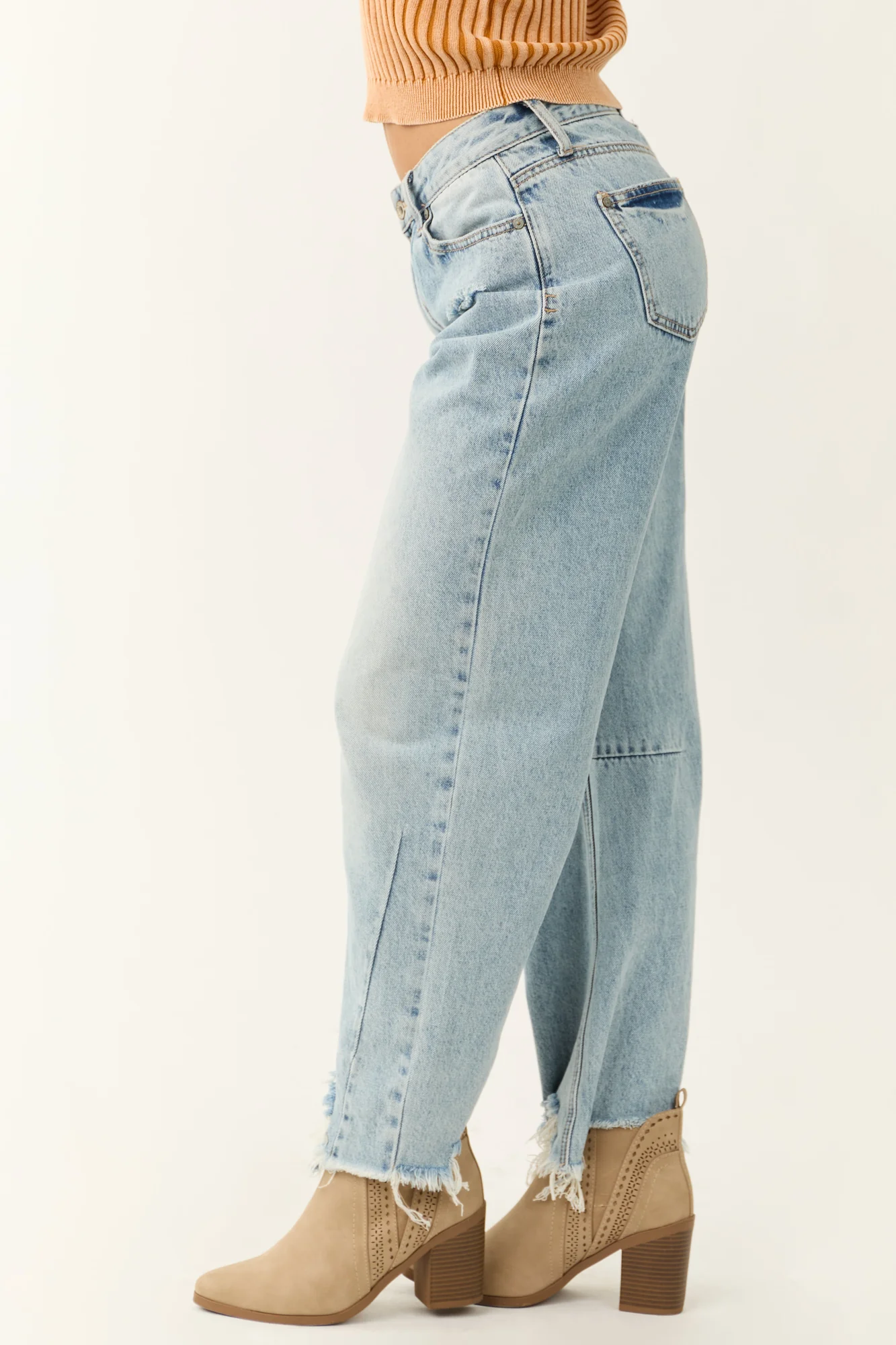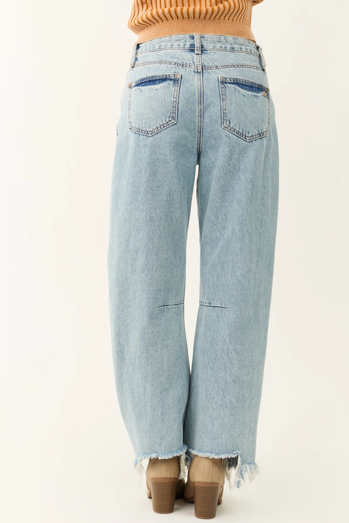 Experience the perfect blend of comfort and style with our Light Wash High Rise Wide Leg Denim Jeans. Designed for versatility and fashion-forward individuals, these jeans feature a high rise waist, non-stretchy denim, five functional pockets, and a zipper fly with double button closure. The shark bite hem and dart seams add a unique touch to your look. Crafted from 95% Cotton and 5% Polyester, these jeans are both durable and chic. Embrace your individuality and elevate your wardrobe with our Light Wash High Rise Wide Leg Denim Jeans today!