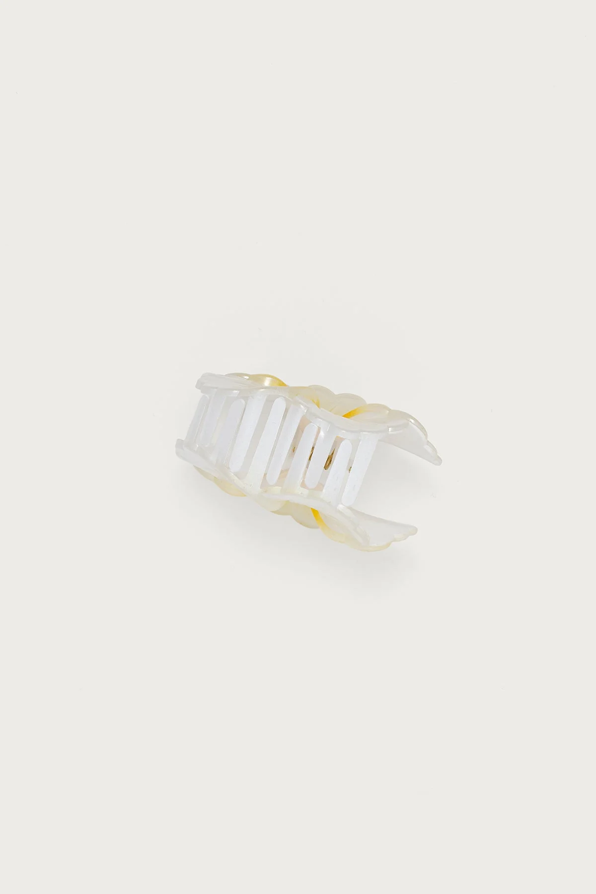 Elevate your hairdo with this elegant Light Yellow Hibiscus Flower Claw Hair Clip. The intricate design features a plastic hibiscus flower for a touch of beauty and style. Add a floral flair to your look effortlessly. This hair accessory measures approximately 3 inches in length, providing a secure hold with a fashionable twist.