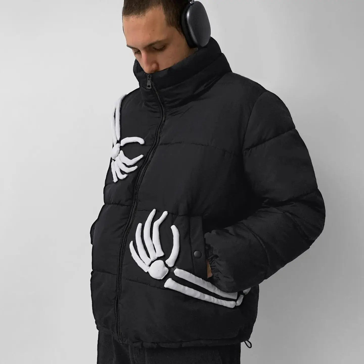 Discover our exclusive Limited Edition Black Skeleton Puffer Jacket designed for men who appreciate standout style. Crafted from a premium blend of cotton and polyester, this high-quality jacket adds a touch of charisma to any wardrobe. With meticulous attention to detail, this showstopper is sure to turn heads wherever you go. Explore our size chart for the perfect fit in centimeters and inches. Cultivating happiness and ensuring 100% satisfaction is our ultimate goal. Contact In The End Cult for any assistance.
