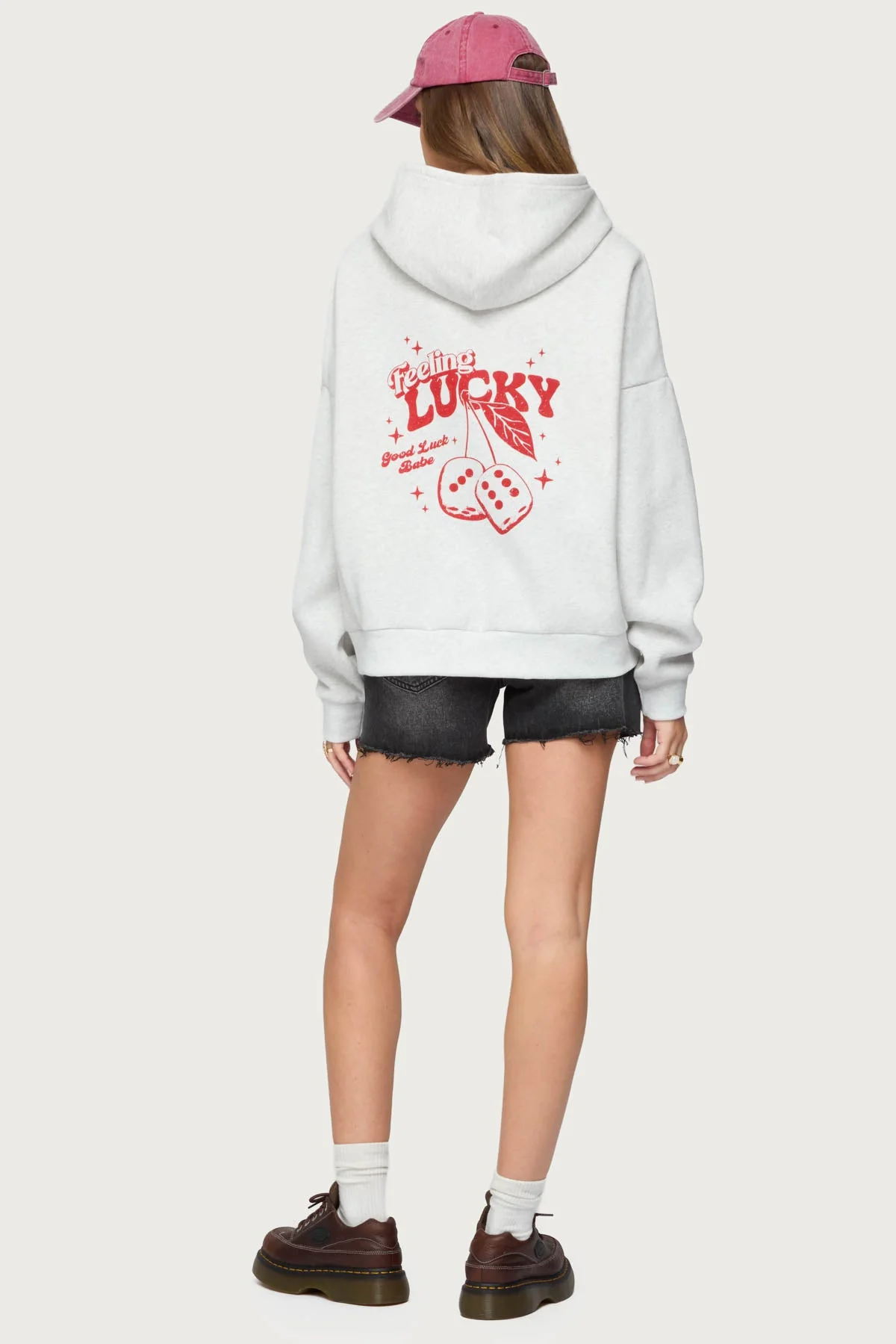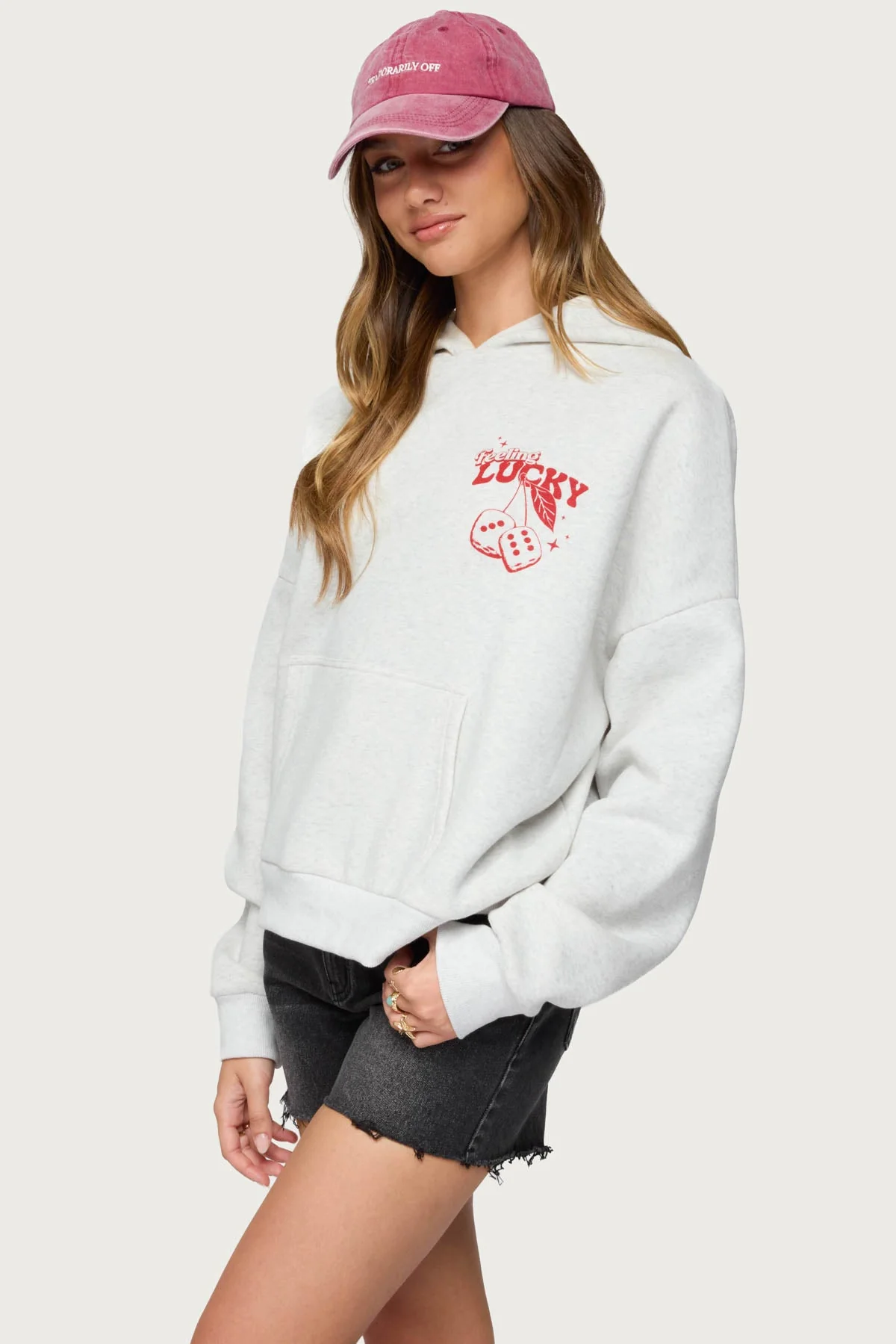 Embrace luck with our Lucky Graphic Dice Printed Hoodie! Made of a premium blend of Polyester and Cotton, this oversized hoodie features eye-catching dice graphics. Perfect for everyday wear, it comes in Gray Melange color, available in sizes XS to XL. Stay comfortable and stylish effortlessly. This model-friendly hoodie can be machine washed for easy care. Elevate your style with luck on your side!