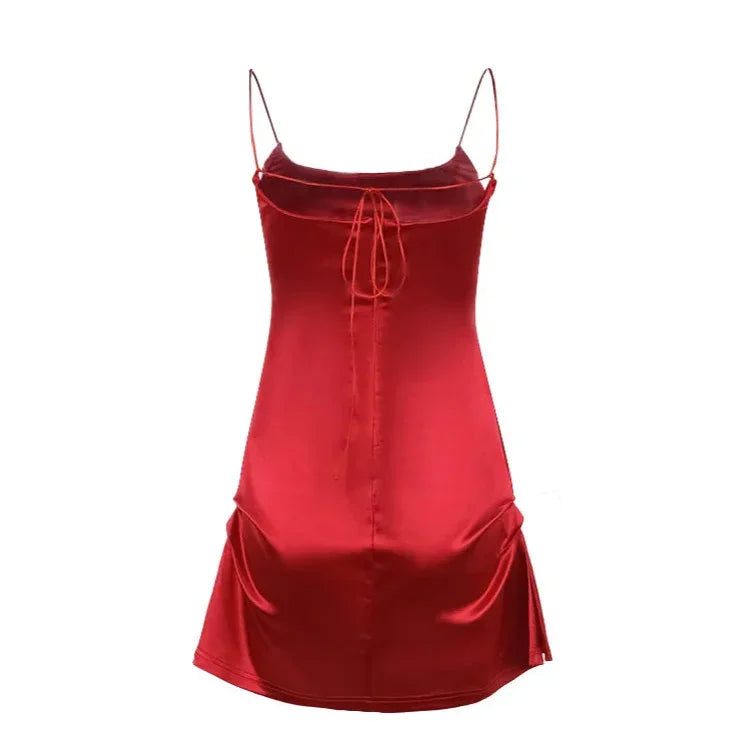 Indulge in the sophistication of this Silk Satin Mini Dress, featuring a chic scooped neckline, straight bust, and sleek side slits for a modern twist on90s fashion. The slim fit silhouette flatters your figure, while the fully lined construction ensures a polished look. Transition effortlessly from day to night with this versatile dress, perfect for pairing with a blazer or statement accessories for a stylish ensemble. Embrace timeless elegance and confidence with this exquisite piece .