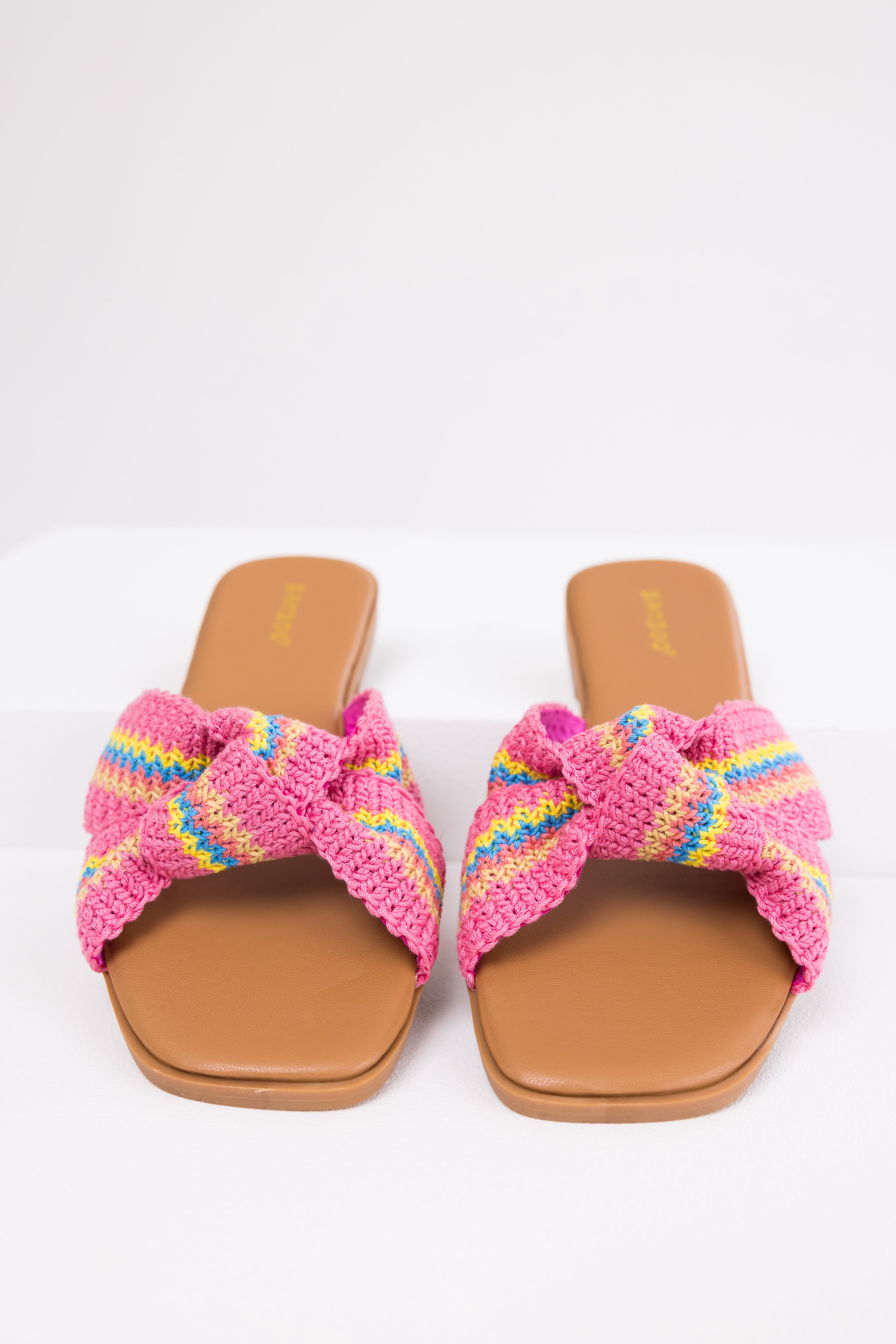 Discover the comfort and style of these Magenta Knit Cross Strap Flat Sandals. Made of faux leather with a slightly cushioned insole, these sandals feature a beautiful criss-cross strap design in hues of Magenta, Watermelon, Sunshine, Azure, and Honeysuckle. With a low heel of 0.25 inches and a comfortable circumference of 11 inches, these imported sandals are perfect for casual daytime wear during the summer season. Available in various sizes from 5.5 to 10.