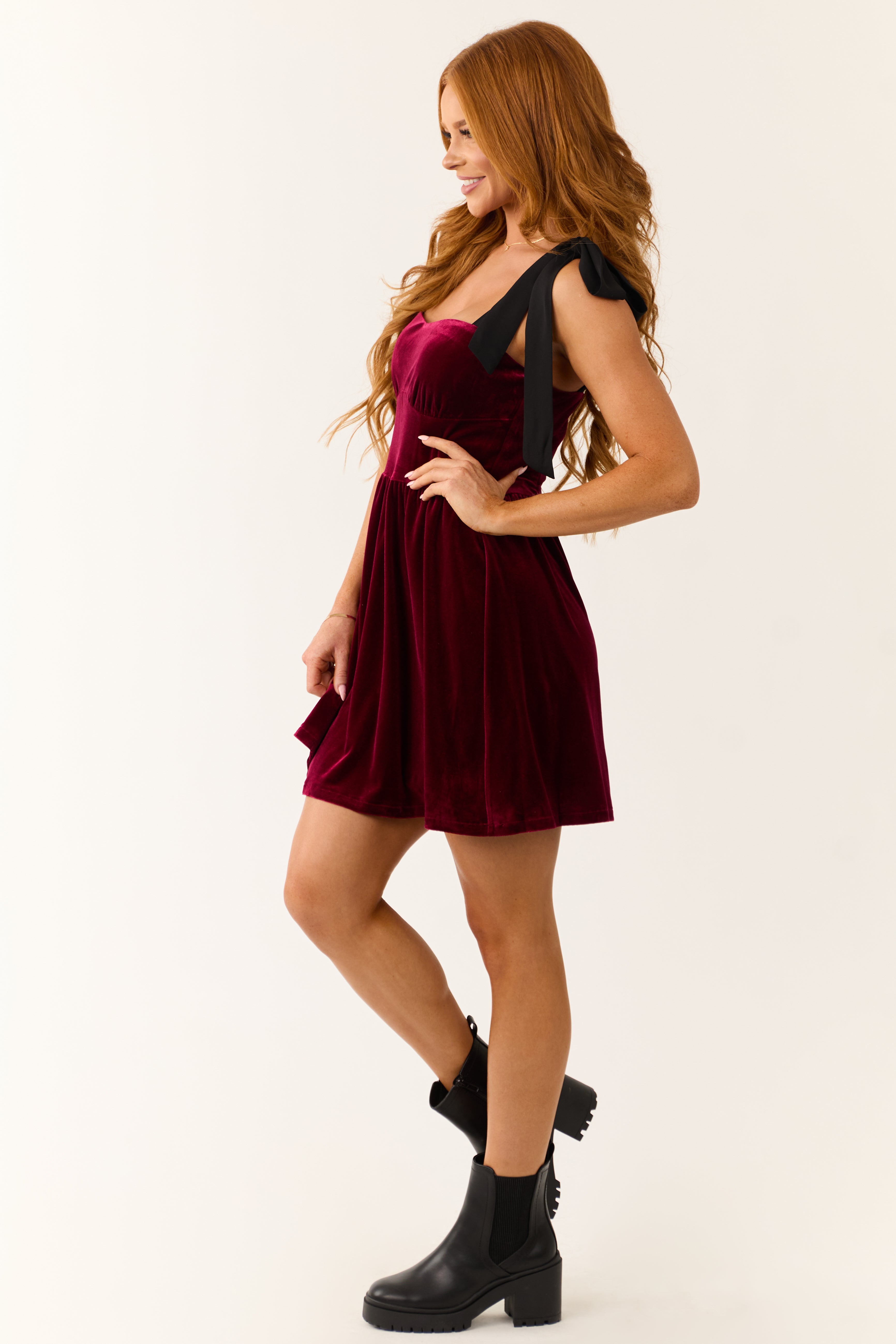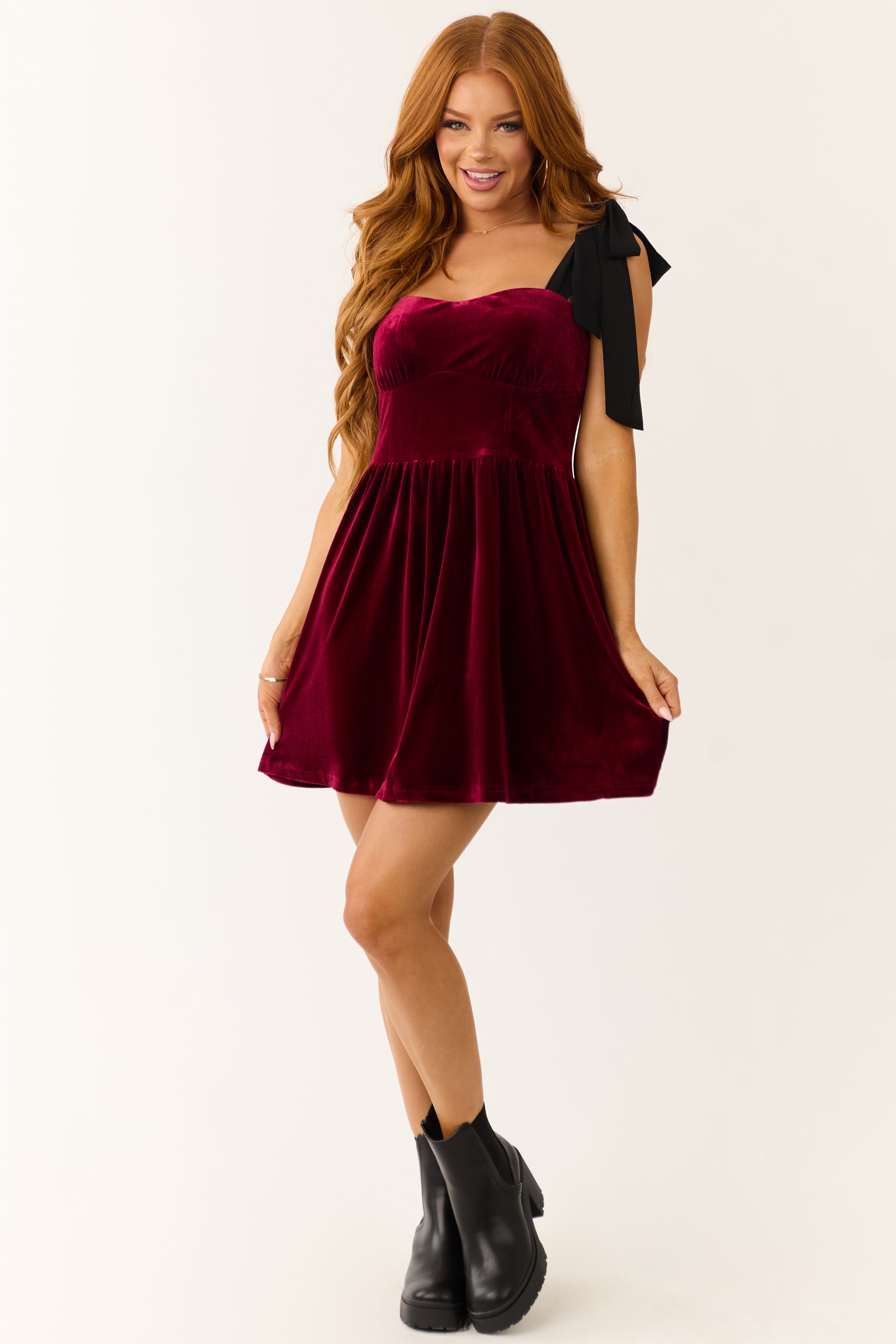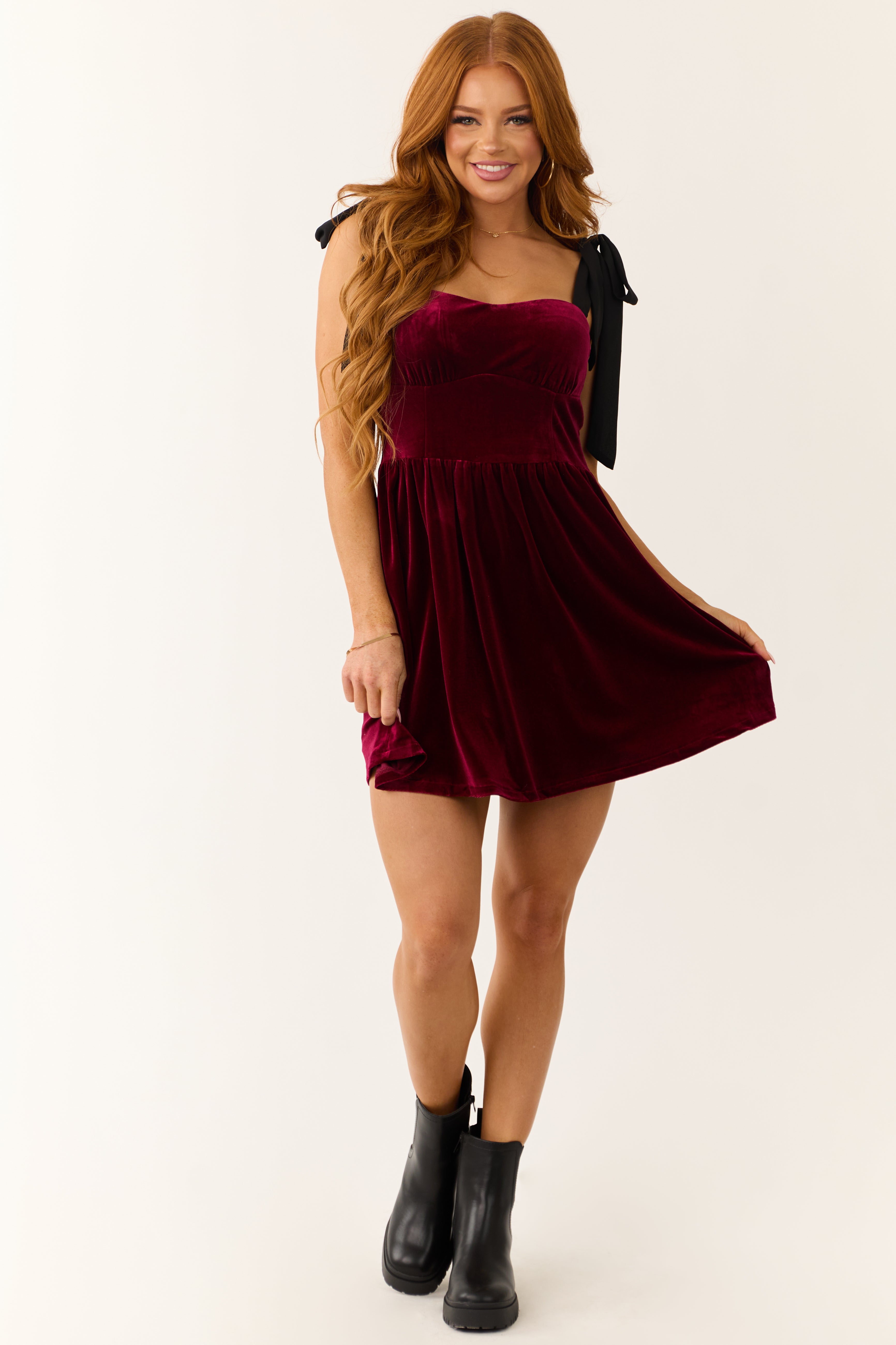 Step out in style with our Maroon Velvet Sweetheart Neckline Short Dress featuring contrast adjustable self tie straps and an elastic waistband for a perfect fit. Made of stretchy velvet knit, this dress is not only fashionable but also comfortable. The zippered back with hook and eye closure adds a touch of elegance. Complete your look with this lined dress suitable for any occasion. Care instructions: Hand wash cold separately to preserve color. Hang to dry.