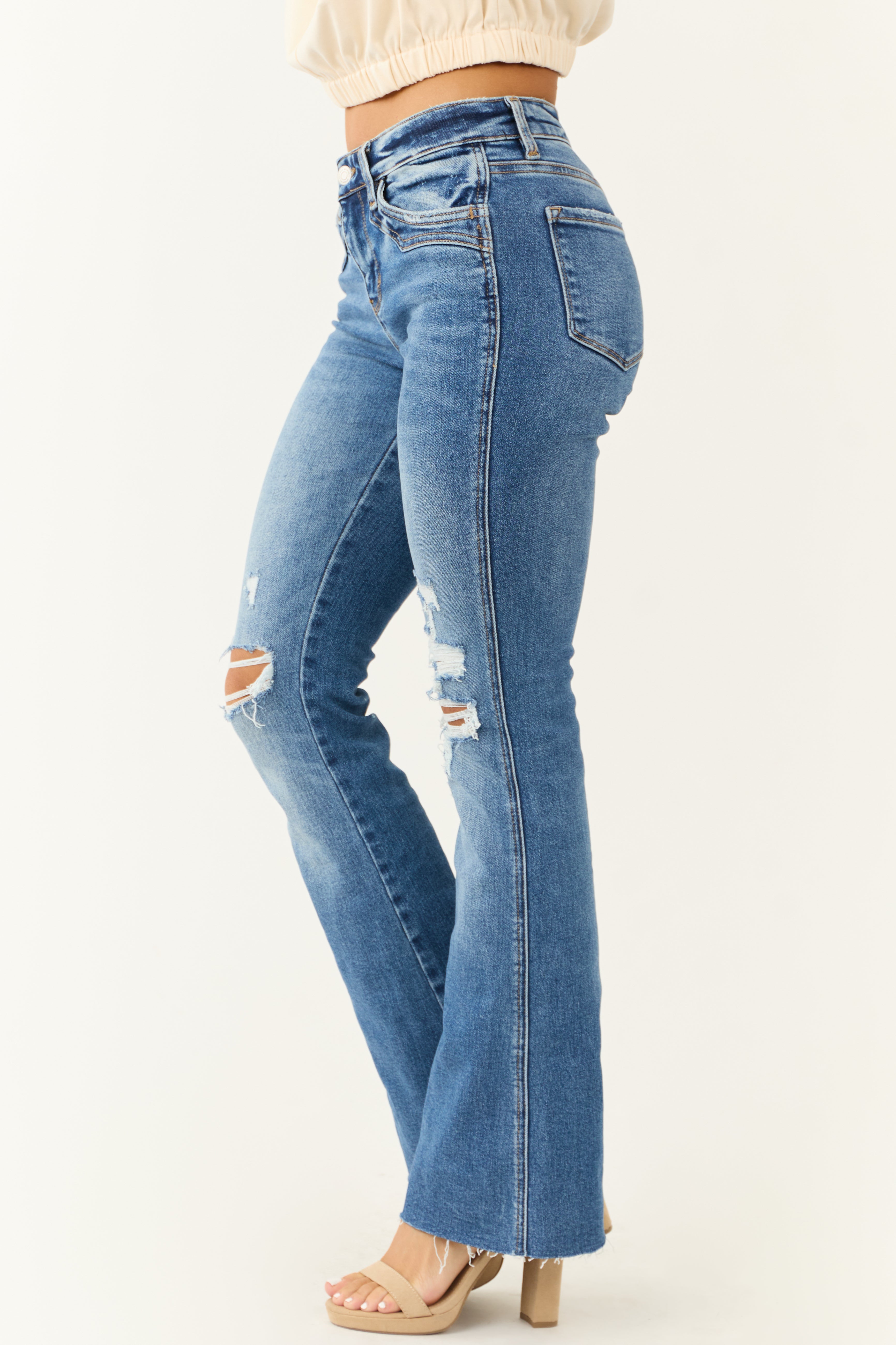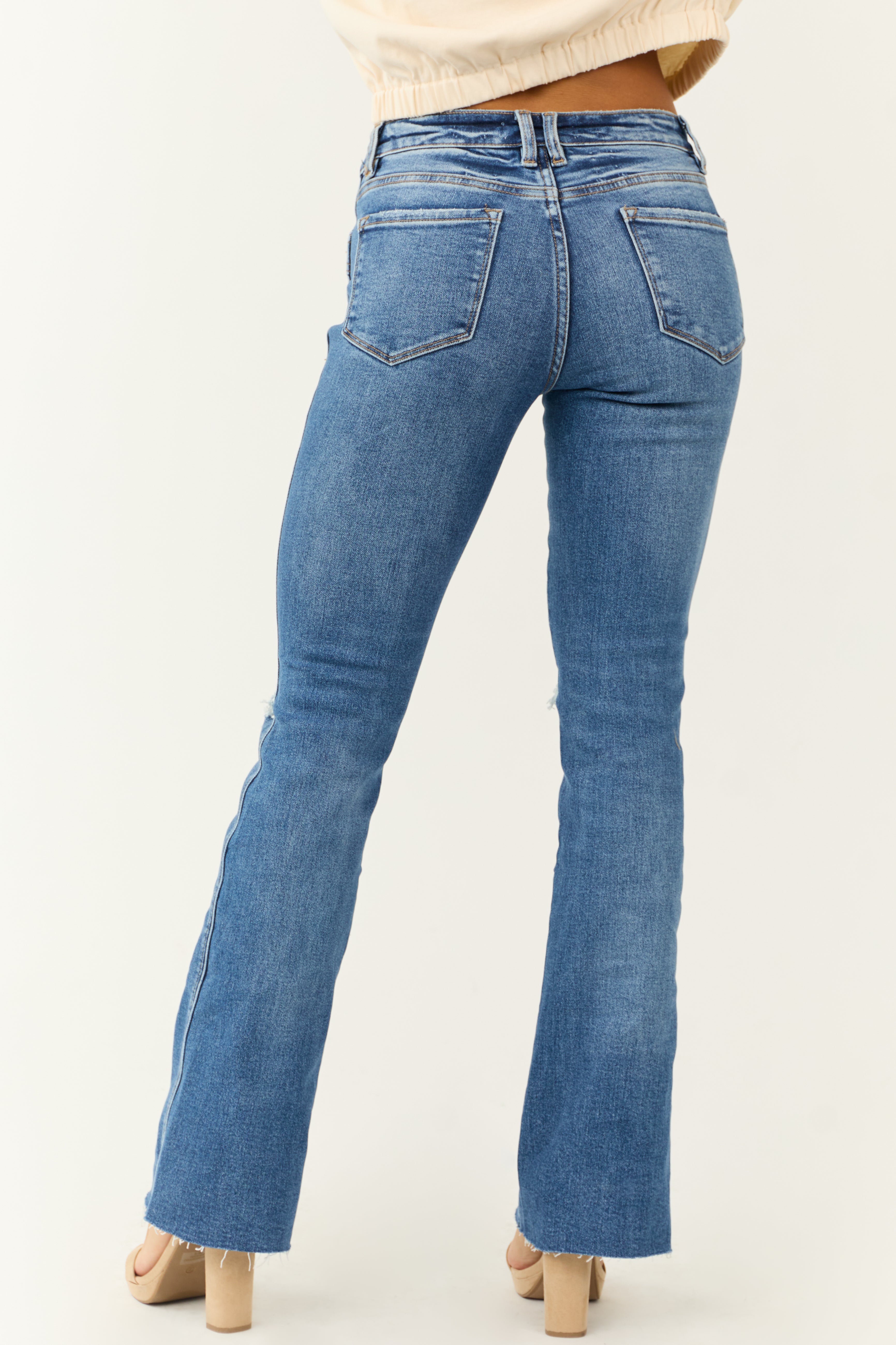 Medium Wash Bootcut Jeans with Raw Hem