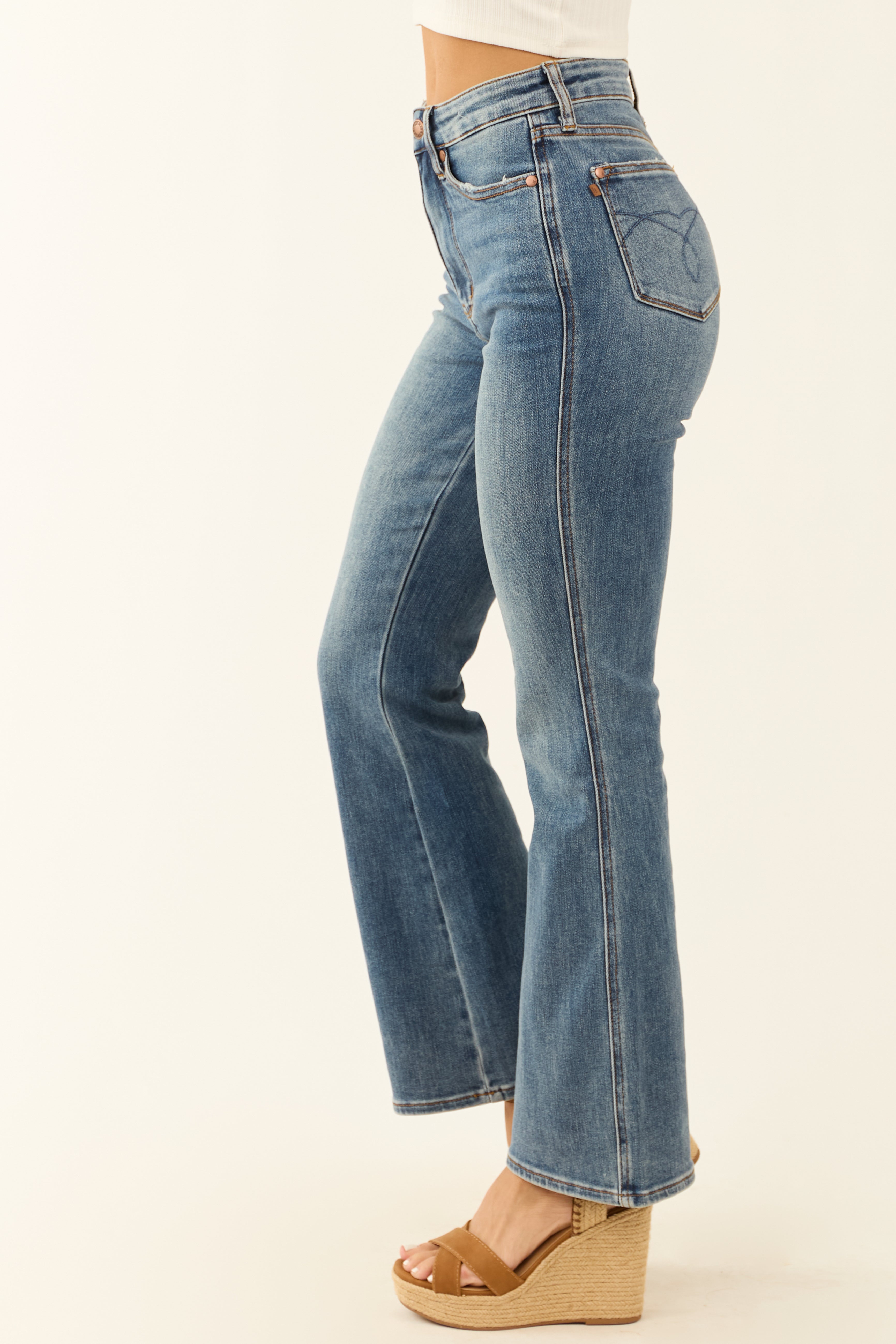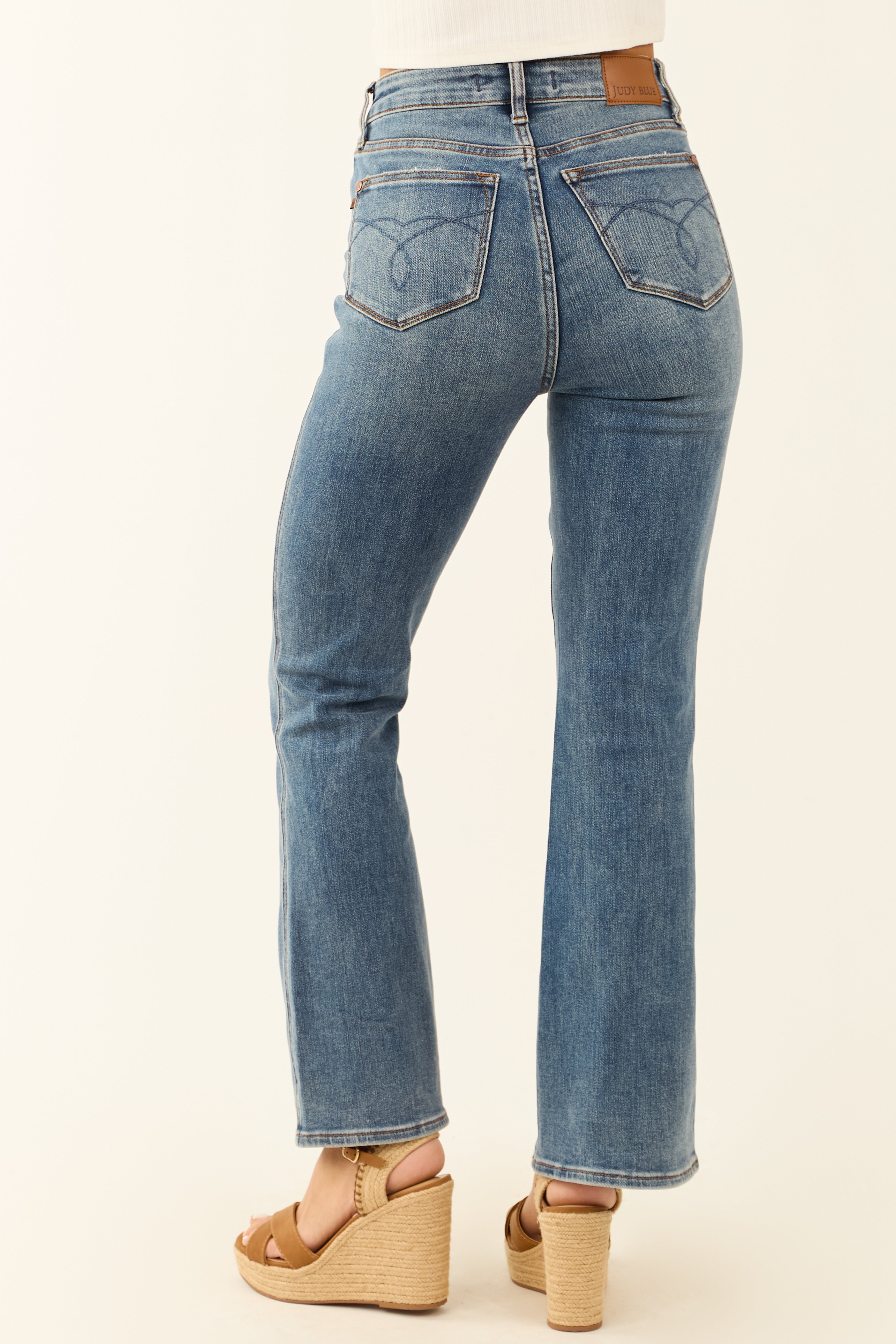 Upgrade your wardrobe with these womens medium wash bootcut stretchy jeans. Designed for comfort and style, these high rise denim pants feature a 5-pocket design, zipper fly with button closure, belt loops, and a non-distressed finish. The soft, stretchy denim with 76.2% Cotton, 22.5% Polyester, and 1.3% Spandex provides a perfect fit. Available in sizes 0-15 with waist sizes from 25″ to 33″ and hip sizes from 30″ to 38″. Find your perfect pair today!