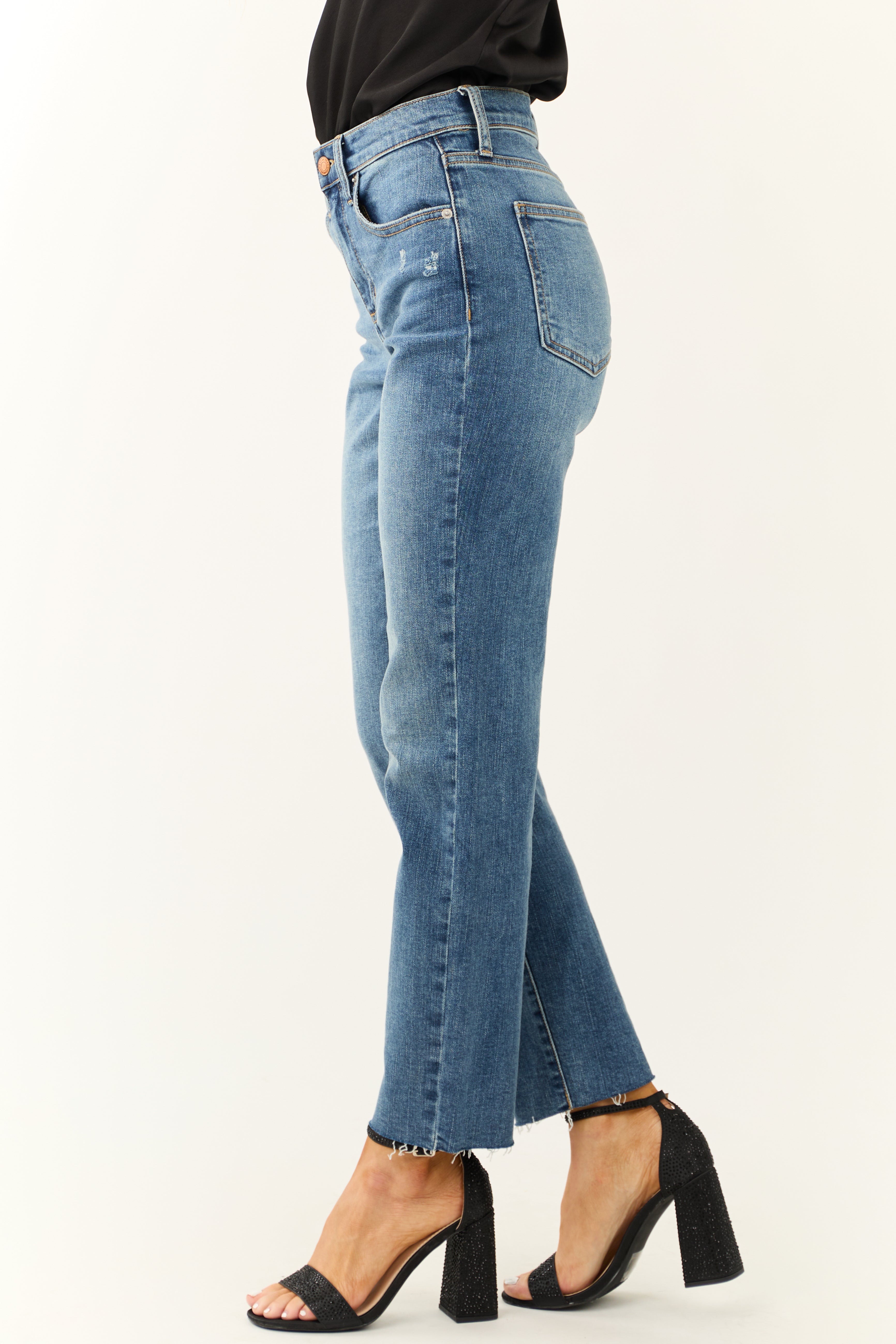 Upgrade your denim collection with these trendy high rise raw hem jeans. Designed for comfort and style, these jeans feature a flattering fit with stretchy material that allows for extra flexibility. The zipper fly with button closure, belt loops, and 5 pockets add practicality to the chic design. Made of 99% Cotton and 1% Spandex, they are perfect for everyday wear. Machine washable and easy to maintain. Available in sizes 25-31.