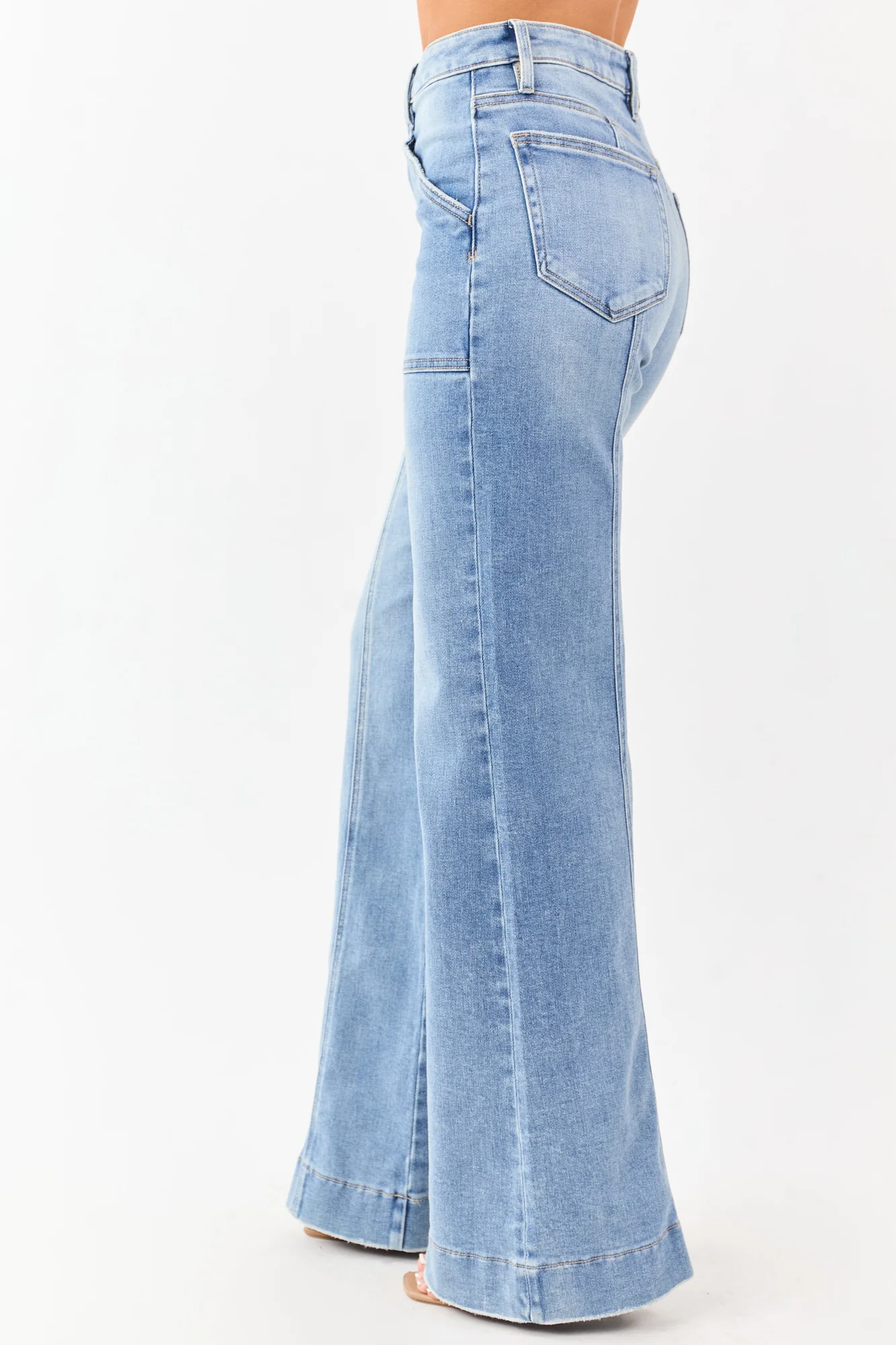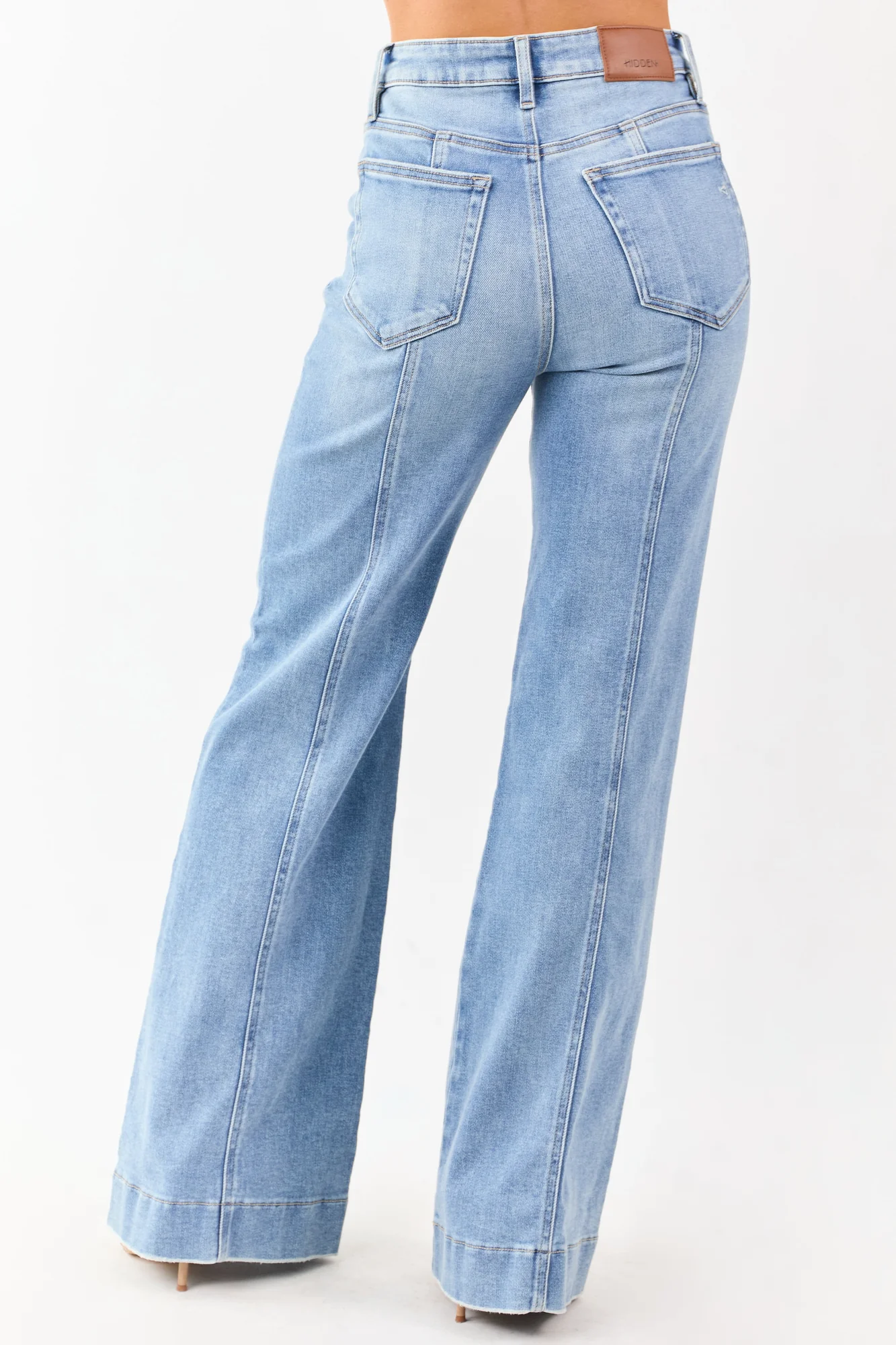 Experience all-day comfort with these tall length flare jeans featuring stylish vertical seam details. Made of stretchy denim, these jeans have a high rise and a forgiving waist, perfectly suited for a relaxed yet trendy look. The zipper fly and button closure, along with 4 pockets, add functionality to style. Crafted from 93% Cotton, 5% Polyester, and 2% Spandex, these jeans offer both style and comfort, making them a versatile addition to your wardrobe. Available in sizes 24 through 31.